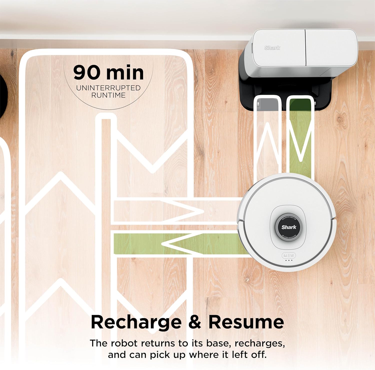 Extended Runtime with Recharge & Resume: When battery runs low, your robot returns to the dock, recharges, and resumes where it left offdelivering uninterrupted robotic vacuum coverage.