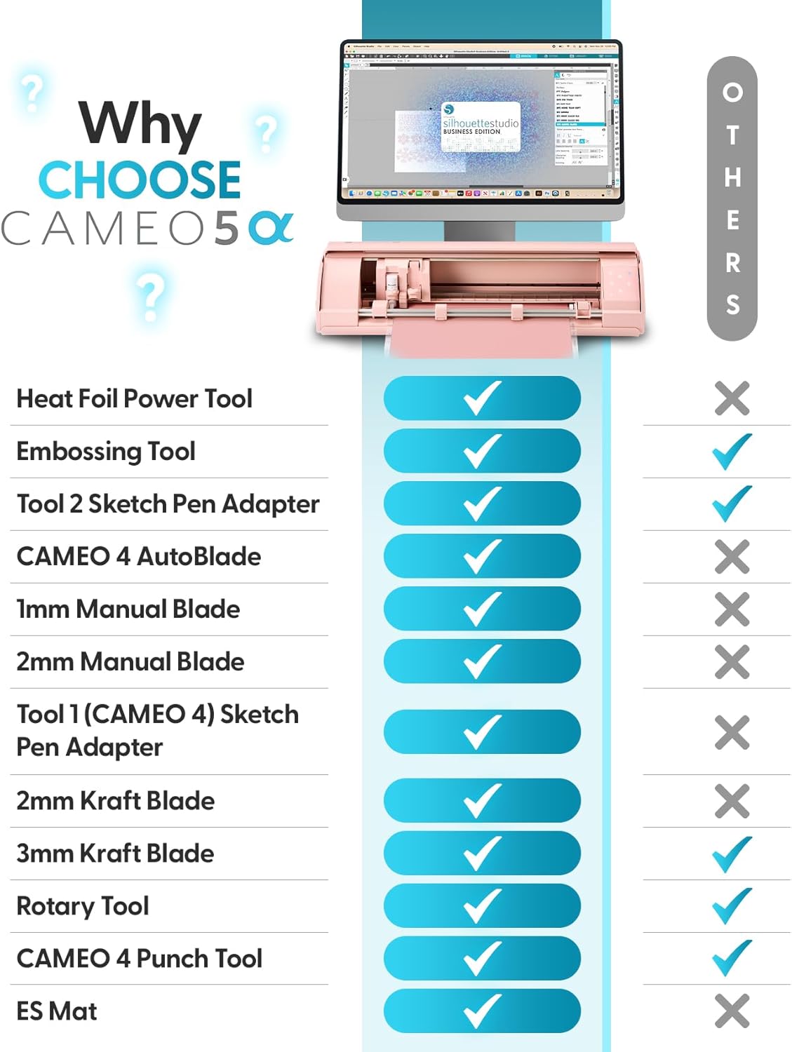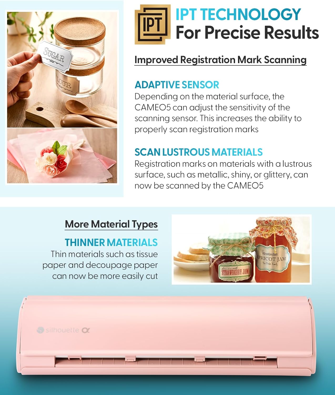 OPTIMIZED CUTTING POWER: The Silhouette Cameo 5 Alphas Intelligent Path Technology (IPT) optimizes the cutting order resulting in smoother cleaner cuts with less material stress. This ensures a more efficient process reduces waste and enhances the quality