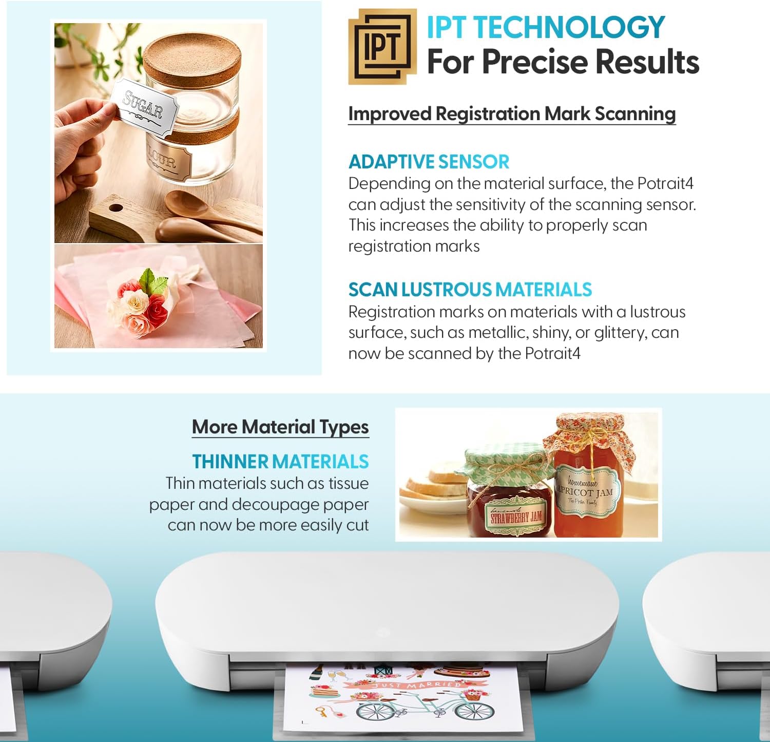 IPT Technology:optimizes cut orders providing a tension-free cutting experience for all materials. Multi-layered cuts and sharp angles are achieved without tearing or rounding corners elevating your designs to a professional level.