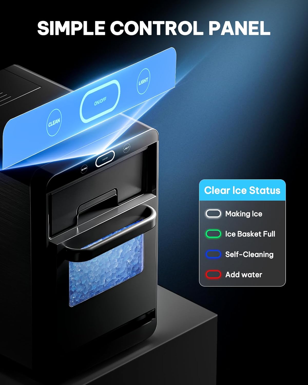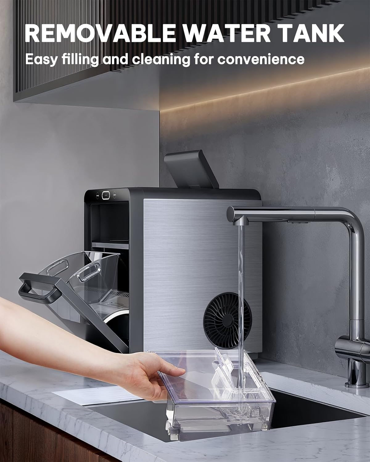 Smart Self-Cleaning Ice Maker System: The countertop ice maker simplifies maintenance with one-touch auto cleaning cycle. Removable components (water tank ice basket) are dishwasher-safe crucial for nugget ice fresh