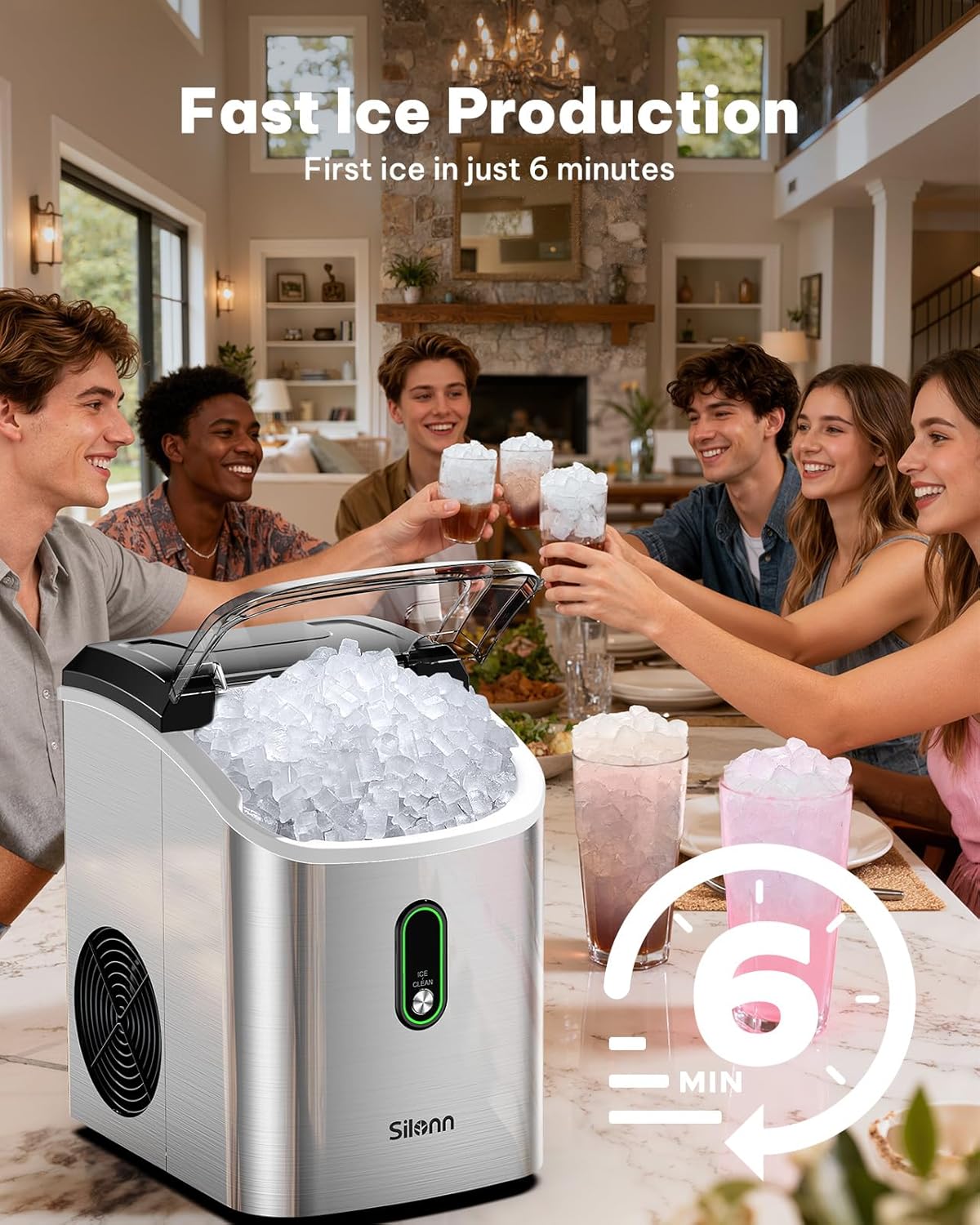 Delicious Chewable Nugget Ice: Enjoy the delightful crunch of our nugget ice maker which produces irresistibly chewable nugget ice ideal for smoothies cocktails sodas and more. Unlike traditional ice cubes our nugget ice is made from compacted layered ice flakes offering a superior texture and mouthfeel that enhances your favorite beverages