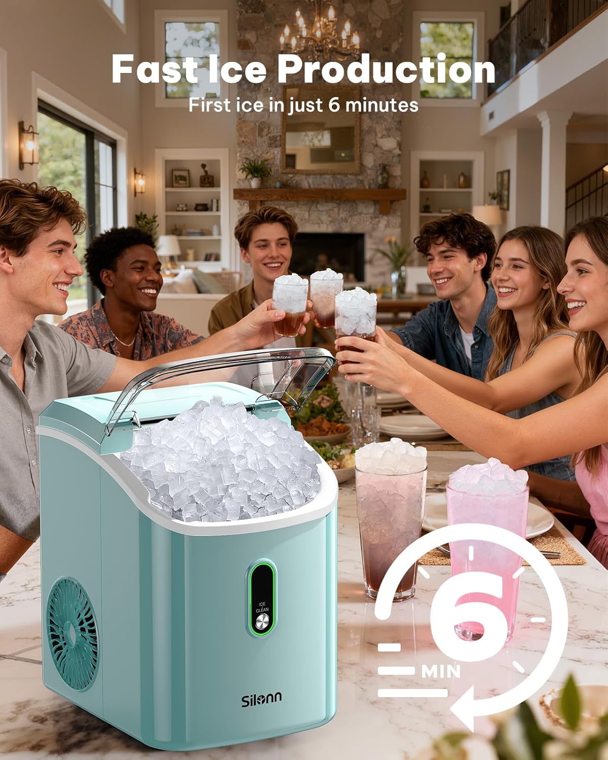 Rapid Ice Production: Experience lightning-fast ice-making with the Nugget Ice Maker capable of producing up to 33 pounds of chewable ice daily. Enjoy your first batch in just 6 minutes this sonic ice maker significantly quicker than the average 20 minutes of traditional ice makers