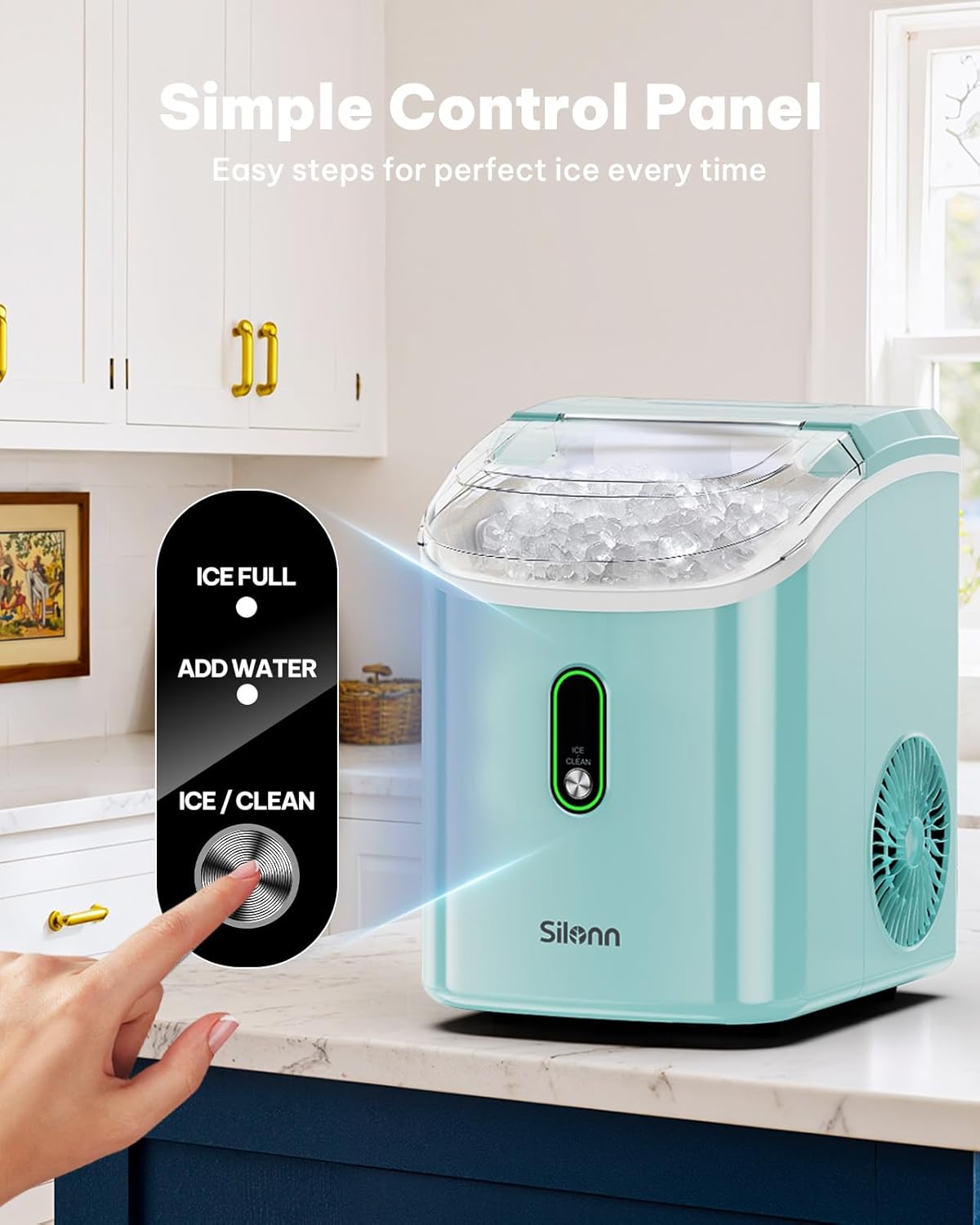 Whisper-Quiet Operation: Experience the tranquility of our nugget ice maker countertop engineered for a quiet cooling process making it one of the most silent models on the market. Enjoy seamless ice production without disturbing your home or office environment. Plus an indicator light conveniently alerts you when water levels are low or the ice basket is full