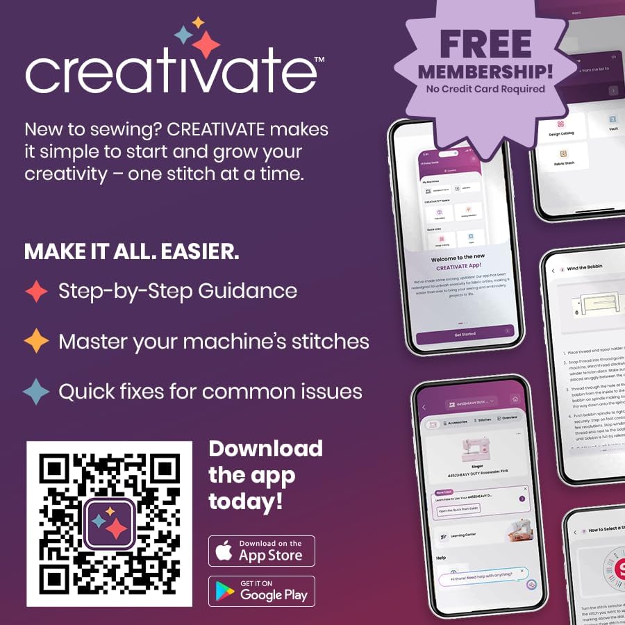 FREE CREATIVATE App Your sewing support hub for ! Input your machine model number to access your manual quick start tutorials troubleshooting tips accessories and more! Download pick your model & start sewing smarter.