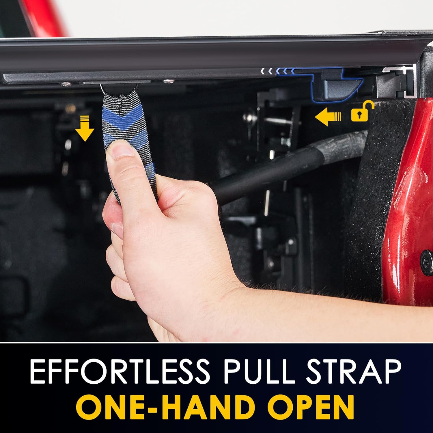 One-Pull Auto Lock with Solid Flip-Up Support: A single pull on the cord instantly and automatically locks the cover in its fully closed position. When fully flipped open the integrated latch provides secure support keeping the cover firmly upright for full bed access. Its a simple robust system that delivers reliable security and stability in every use