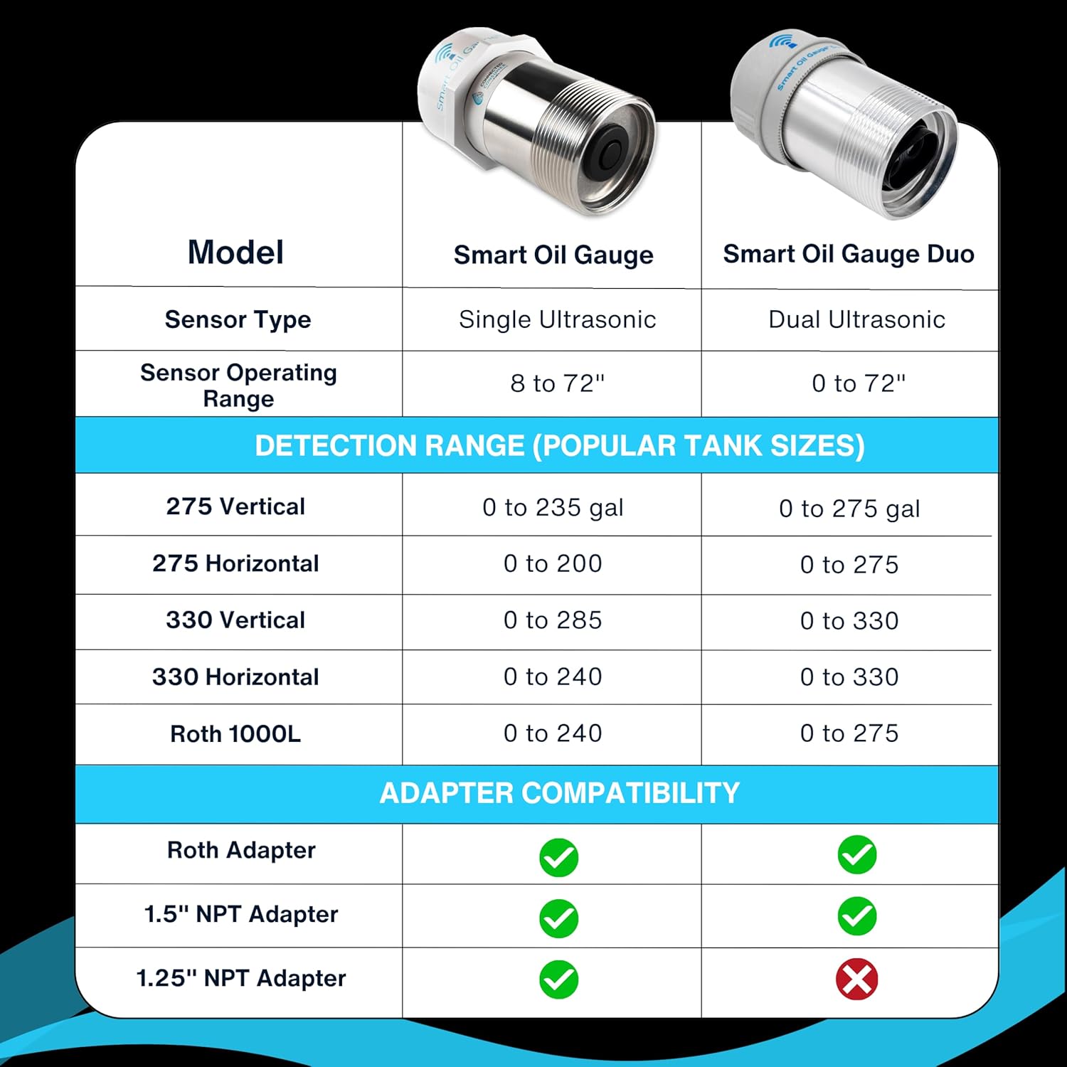 UNPARALLELED COMPATIBILITY: Our oil tank gauge is compatible with standard above-ground steel tanks including 138 220 240 275 and 330-gallon vertical tanks (single or side-by-side) as well as 500- and 550-gallon cylindrical tanks. Adapter kits are available for Roth 400L 620L 1000L and 1000LH tanks and for tanks with 1.25" and 1.5" openings. The 2" NPT design fits new steel tanks and can be installed alongside an existing float gauge and vial assembly.