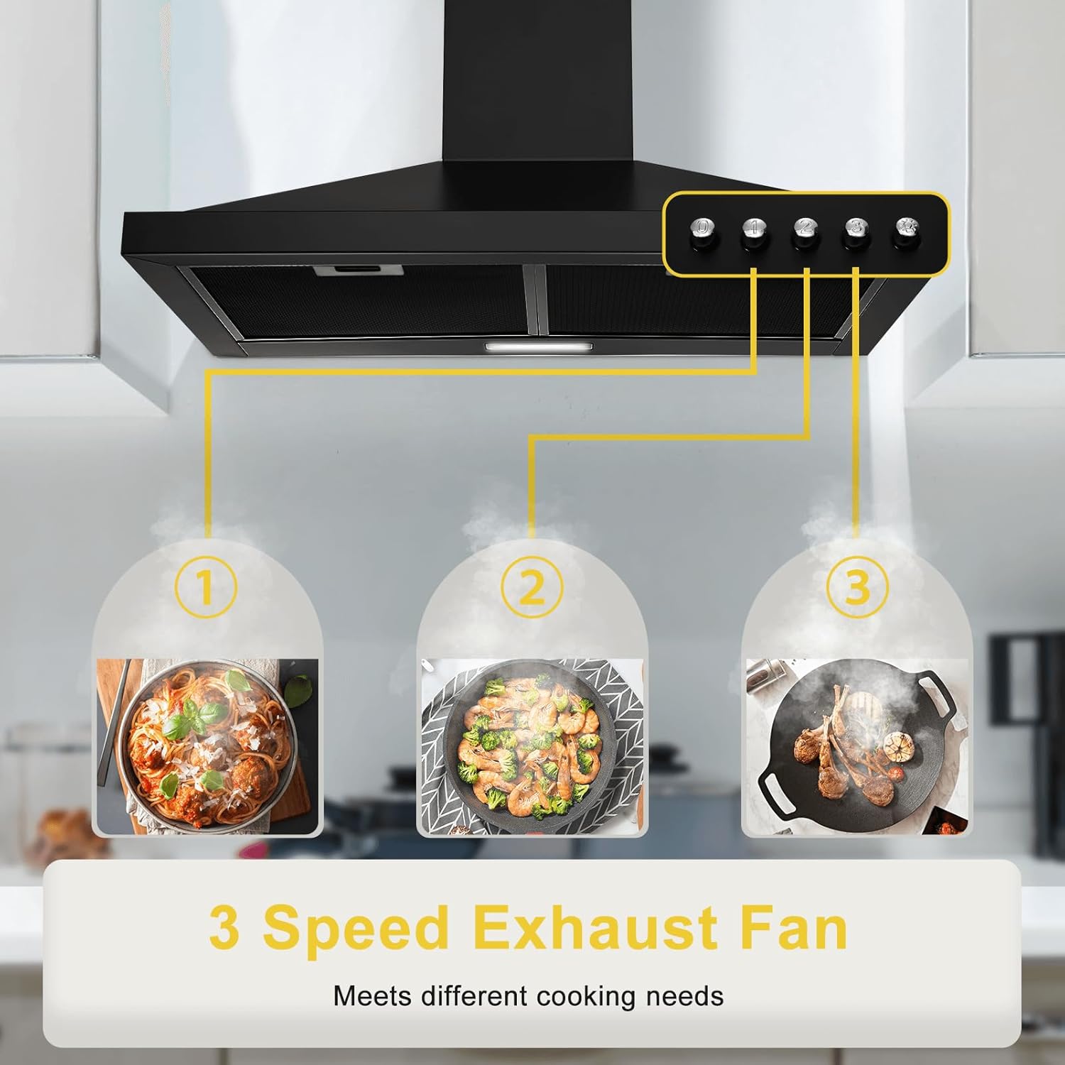 5-layers filters match with strong motor will keepyour place maintain clean and fresh remove air pollutants efficiently while you are cooking.