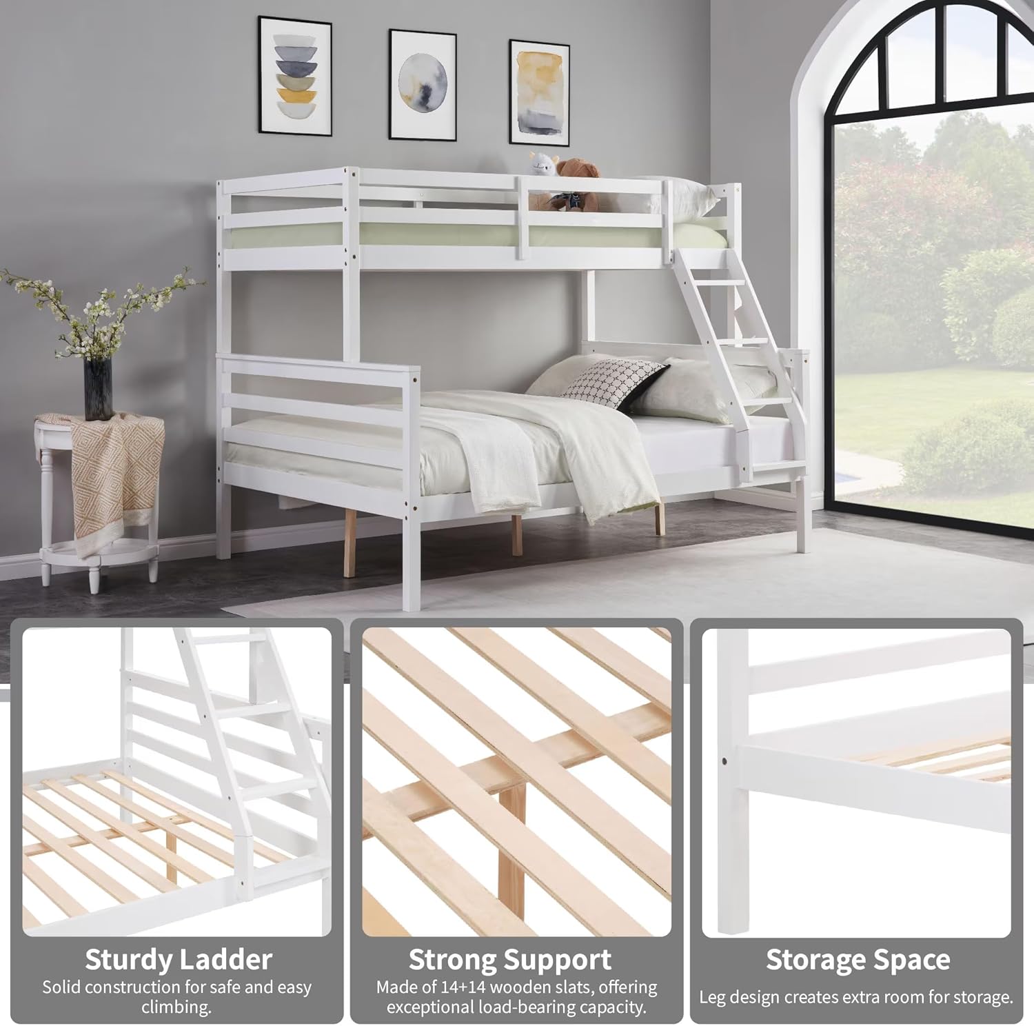 Durable Construction: Supporting up to 400 lbs, this sturdy bunk bed is built with robust wood slats and secure metal-to-metal connections, ensuring long-lasting stability and reliability.