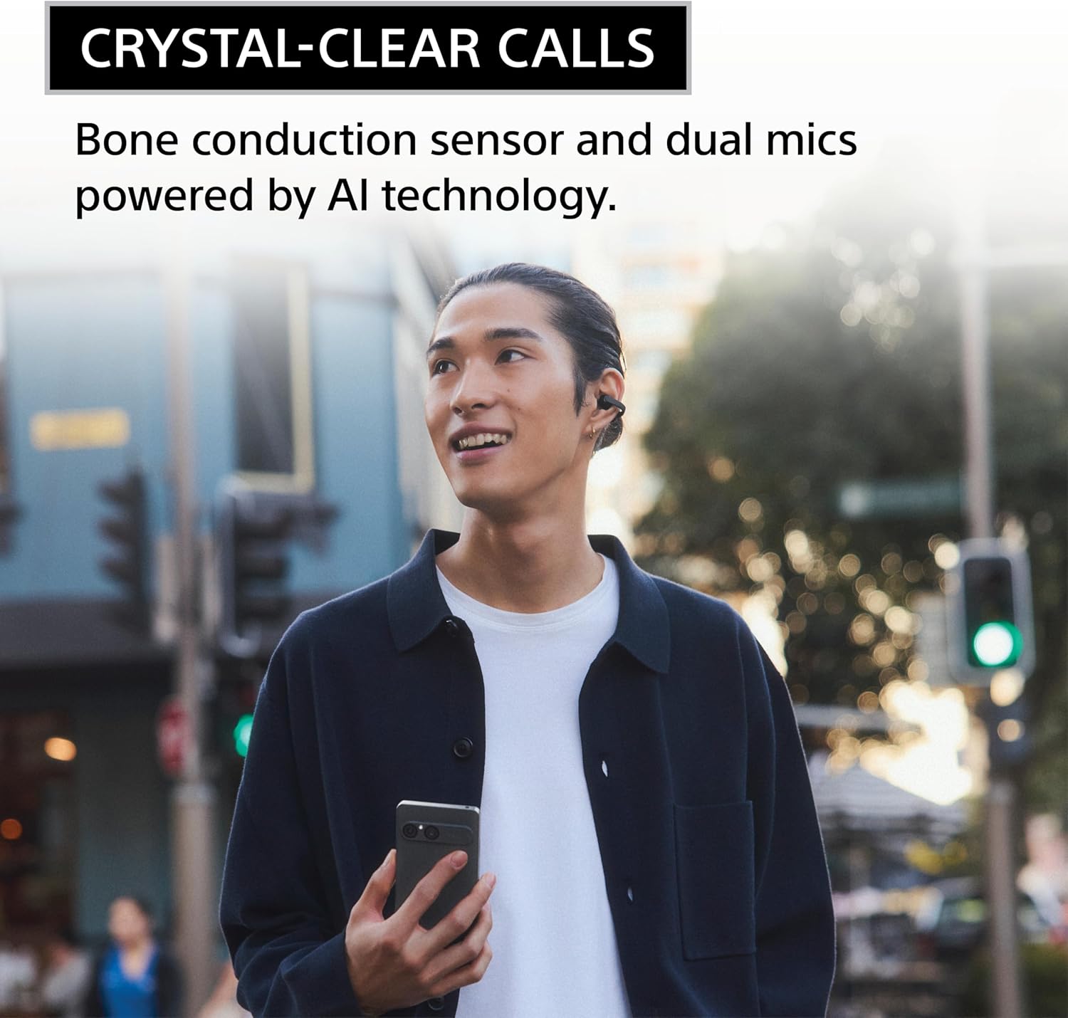 CRYSTAL CLEAR CALLS POWERED BY AI: Take calls with confidence wherever you are powered by advanced AI Voice Pickup Technology. Dual microphones and intelligent noise reduction algorithms work together to isolate your voice filtering out background soundseven in busy environments. A speech vibration sensor detects your voice through bone conduction ensuring every conversation sounds natural and uninterrupted whether youre at home in the office or on the go.