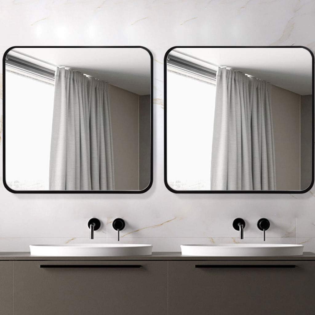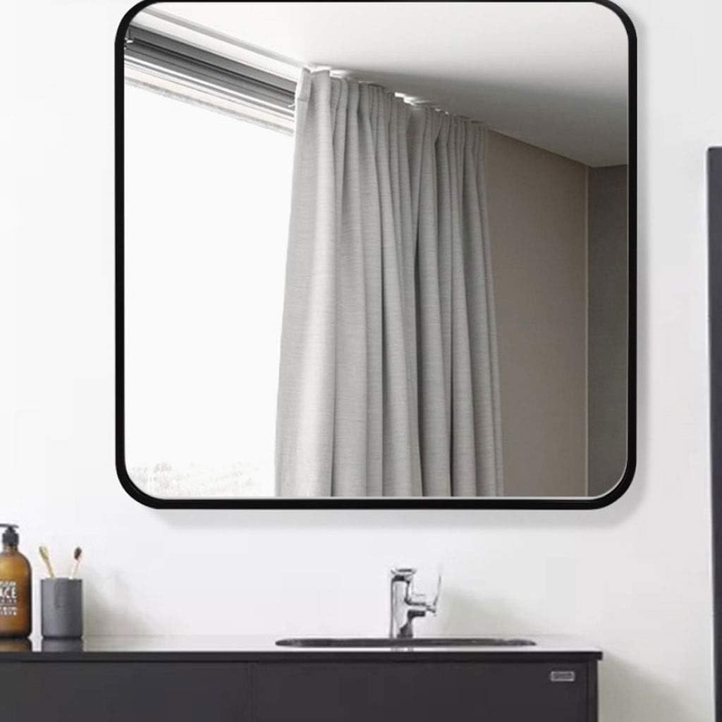 Square mirror, black metal frame, simple and generous