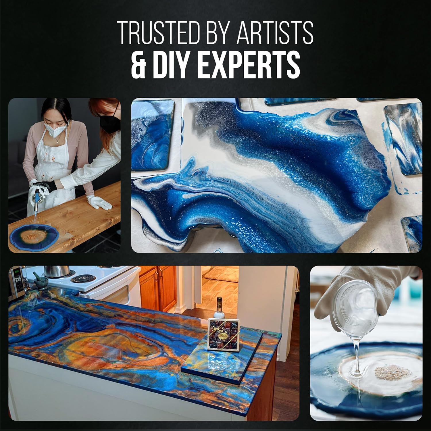 Versatile compatibility: This epoxy resin blend is perfect for use with alcohol ink acrylic silicone oils metallics oil-based paint or any resin color. Providing you with endless possibilities for your art projects whether it's a craft table wood art coasters or any of your DIY projects.