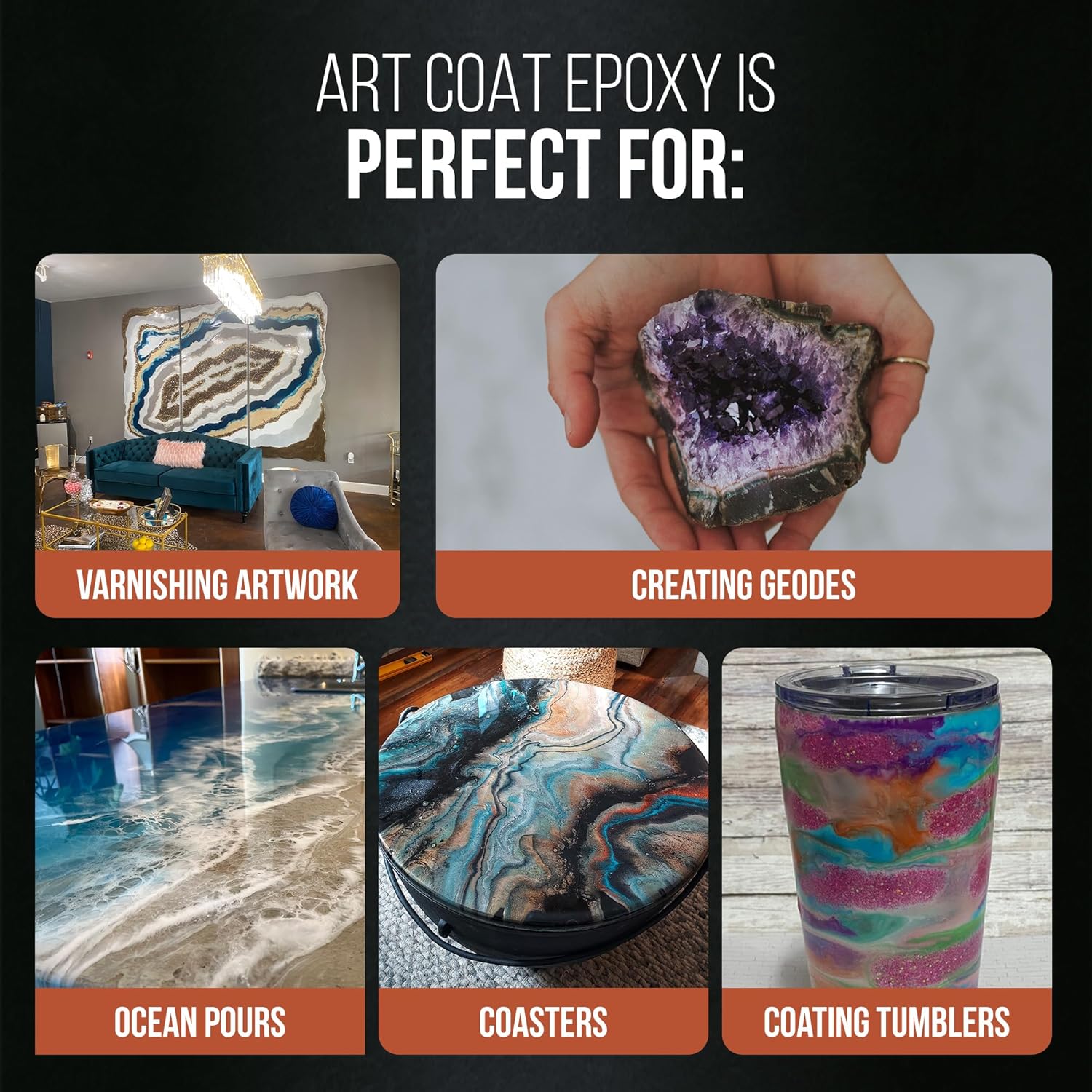 Durable and long-lasting: Our Stone Coat Epoxy is heat-resistant scratch-resistant and water-resistant and also a food safe epoxy resin (when fully cured) making it perfect for use in a variety of settings from artwork to countertops.