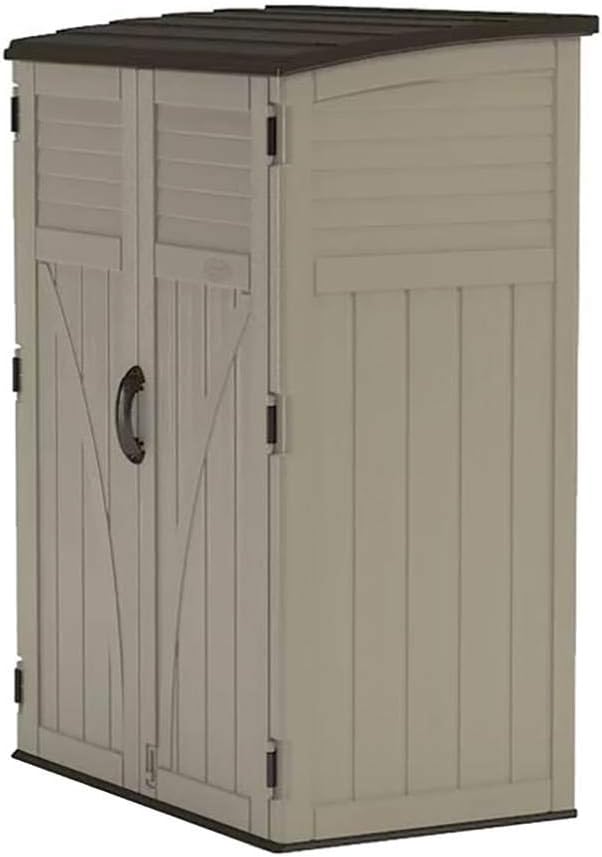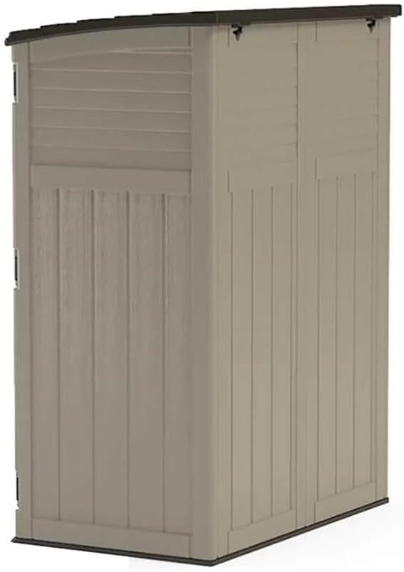 TALL DESIGN FITS BULKY & LONG-HANDLED ITEMS: Store brooms shovels patio umbrellas and pool gear with ease. Vertical shape fits tight patios or garden areas while offering 54 cu. ft. of deep interior space and storage shed floor is included.