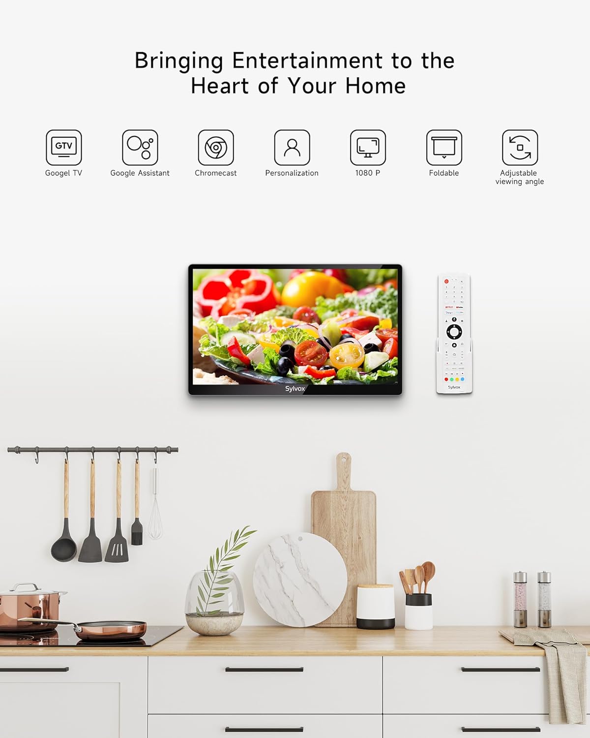 High-Quality Picture and Sound: With a 1080P display and built-in speakers this smart kitchen TV delivers crisp visuals and immersive sound ensuring an enjoyable viewing experience while preparing meals or entertaining.