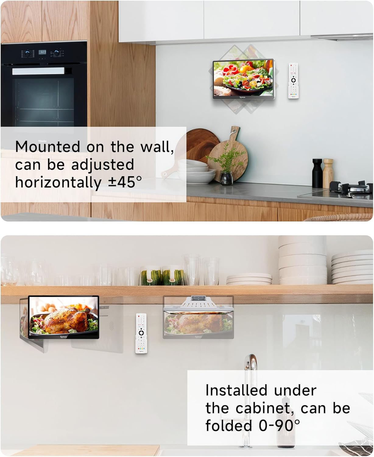 Multiple Installation Options: This TV for kitchen offers versatile installation options including wall mounting under-cabinet mounting or placement on a stand allowing for flexible placement to suit your kitchen layout.