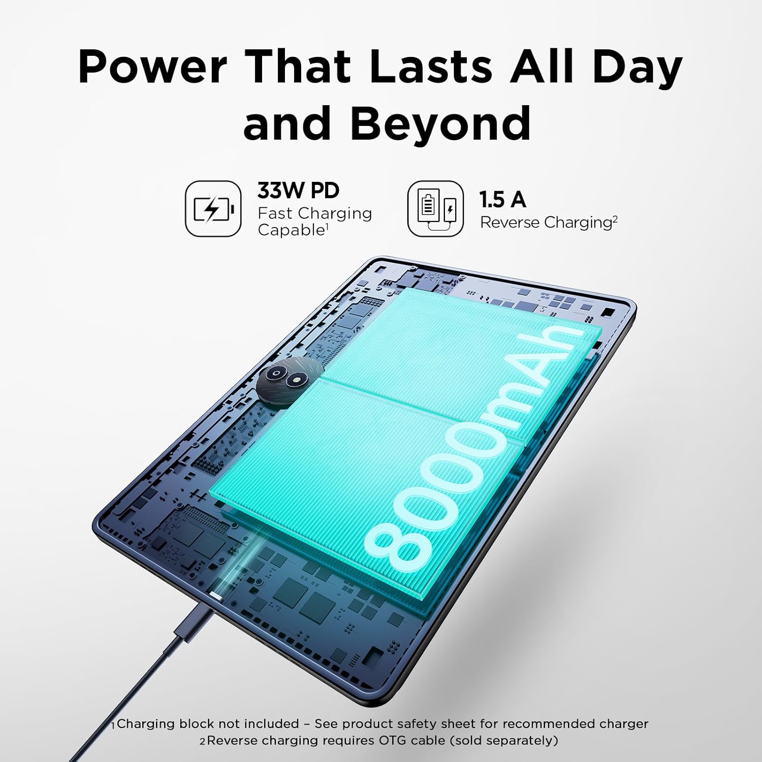 Long Battery Life with Reverse Charging: The NXTPAPER 11 Plus features a large 8000mAh battery providing reliable power for a full day of studying working and entertainment. With 33W PD fast charging it quickly recharges reducing your wait time. Need to help a low-battery phone or earbuds? Simply plug in1.5A reverse charging turns your Android tablet into a portable power source. Note: Charger not included
