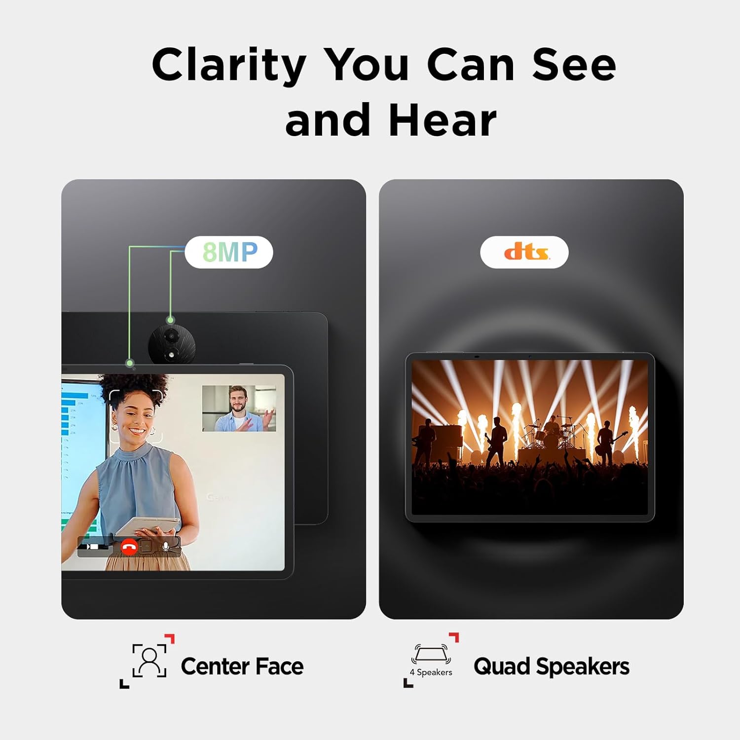 Vivid Visuals Immersive Audio: The NXTPAPER 11 Plus tablets feature 8MP front and rear cameras for HD video calls and everyday photos. Featuring CenterFace tracking you stay perfectly focused even while moving. Quad speakers and dual microphones boosted by smart PA and DTS audio deliver deep bass and clear vocals. The Sound Booster function instantly boosts volume from 100% to 200% enhancing your experience in movies calls and entertainment