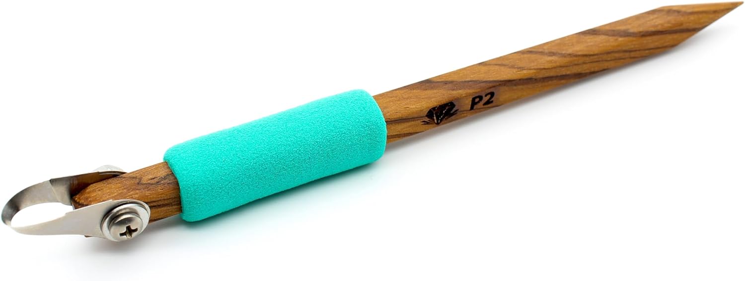 [ P2 Pottery Carving Tool]: 6 mm curved U-tip for smooth deep or shallow grooves. Adjustable angle for clean clay carving and sgraffito. Beautiful 5.5 inch hardwood pencil-type handle.