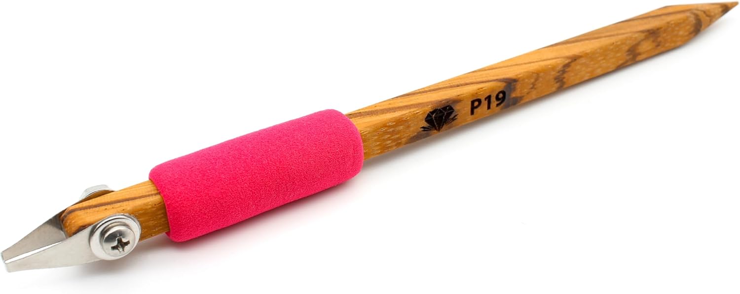 [ P19 Pottery Carving Tool]: 3 mm square-tip for shallow controlled sgraffito carving with clean square edges. 5.5 inch long pencil-type hardwood handle.