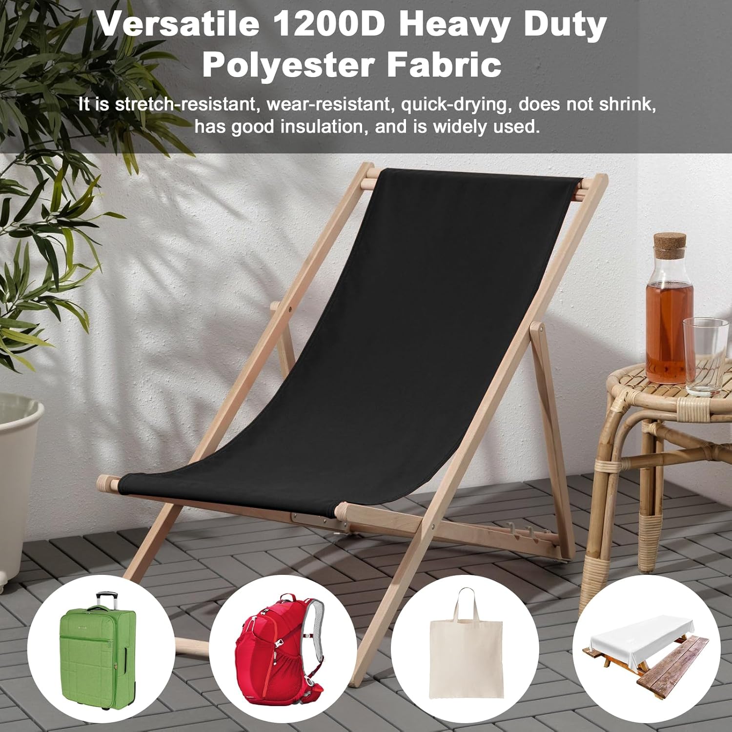 • Thickened Waterproof Canvas Fabric by The Yard 1200D 58" W Outdoor Upholstery Material Heavy Duty Fabric Water Resistant Sewing Material for Chair Patio Cushion Purse Bag 15 Yard Black