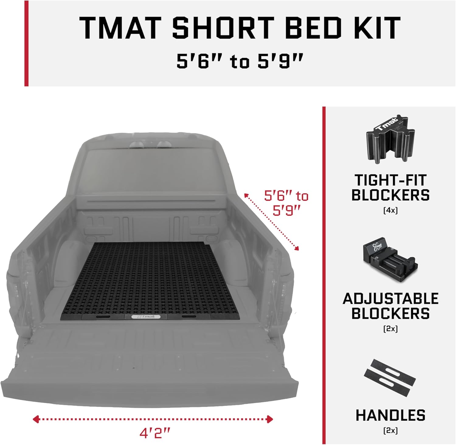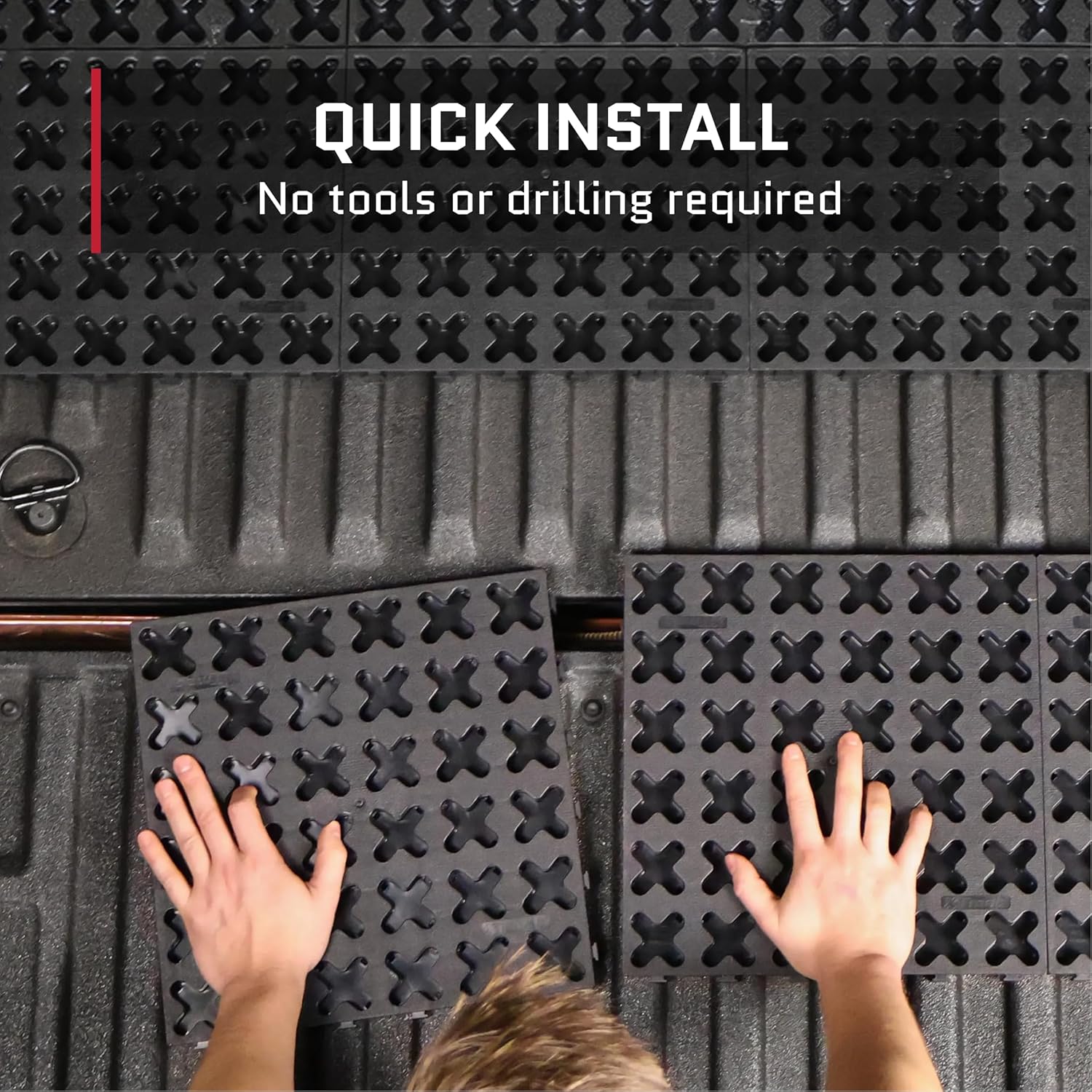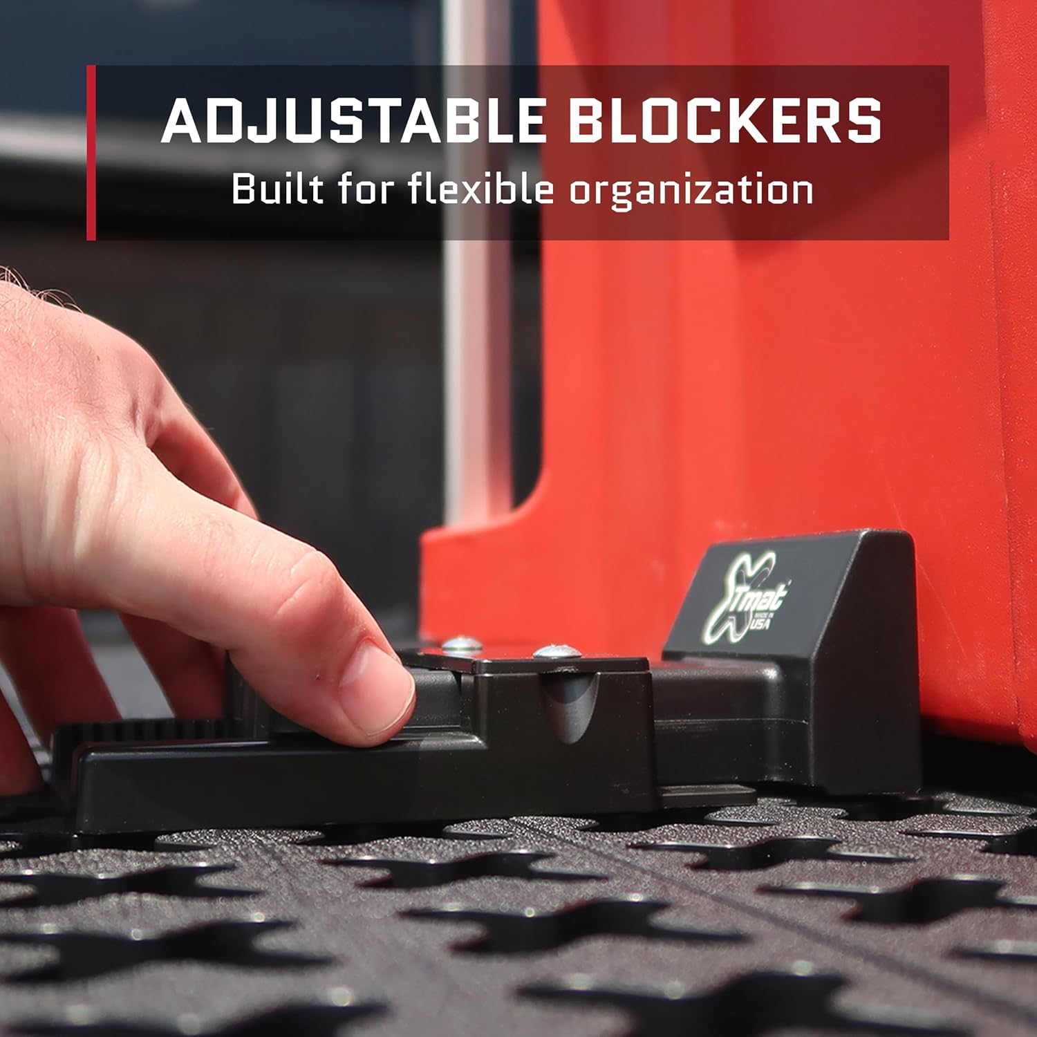 INCLUDES 6 BLOCKERS FOR CUSTOM CONFIGURATION Comes with four solid and two adjustable blockers that fit around your cargo to keep tools boxes and gear organized. Built for tough heavy use this mat system offers a flexible layout that lets gear move into place easily with the help of its smooth surface designideal for work trucks with moving cargo and for weekend warriors who love camping fishing golfing or any outdoor adventure.
