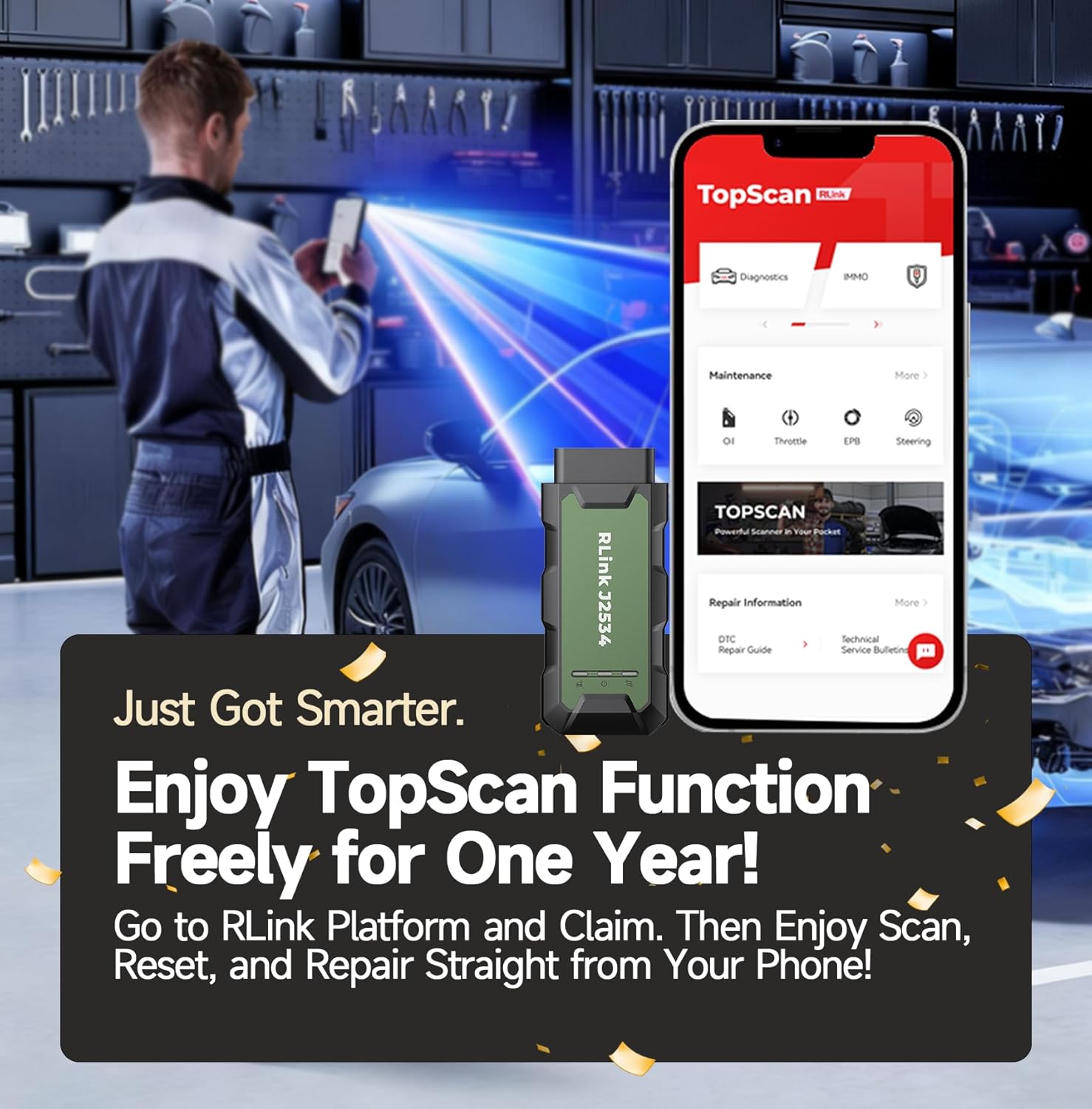 Unlock TopScan Function Mobile Diagnostic Anywhere: Now you can unlock more potential with *TopScan for ONE Year. Scan reset and repair straight from your phone on over 120+ car brands and covers 10 000+ vehicle models including read/clear codes ECU information AUTO VIN viewing real-time data and active tests. Just go for RLink Platform and Claim Now!
