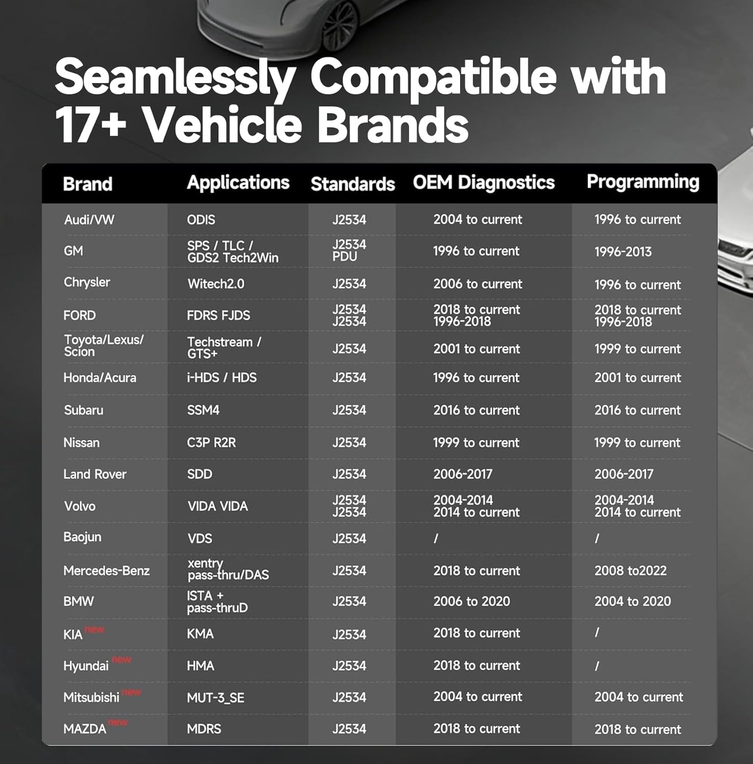 Coverage for 17 Car Brands & Ultra Reliability: Works seamlessly for Chrysler for Ford(Forscan) for GM for Nissan for Toyota for Honda for Subaru(SSM4) for Land Rover/Jaguar for Volvo for Wuling for Volkswagen for Mercedes-Benz and for BMW. Backed by over 10000 real vehicle tests and benefit from a wealth of practical experience this OEM reprogramming tool guarantees stable and exceptional performance