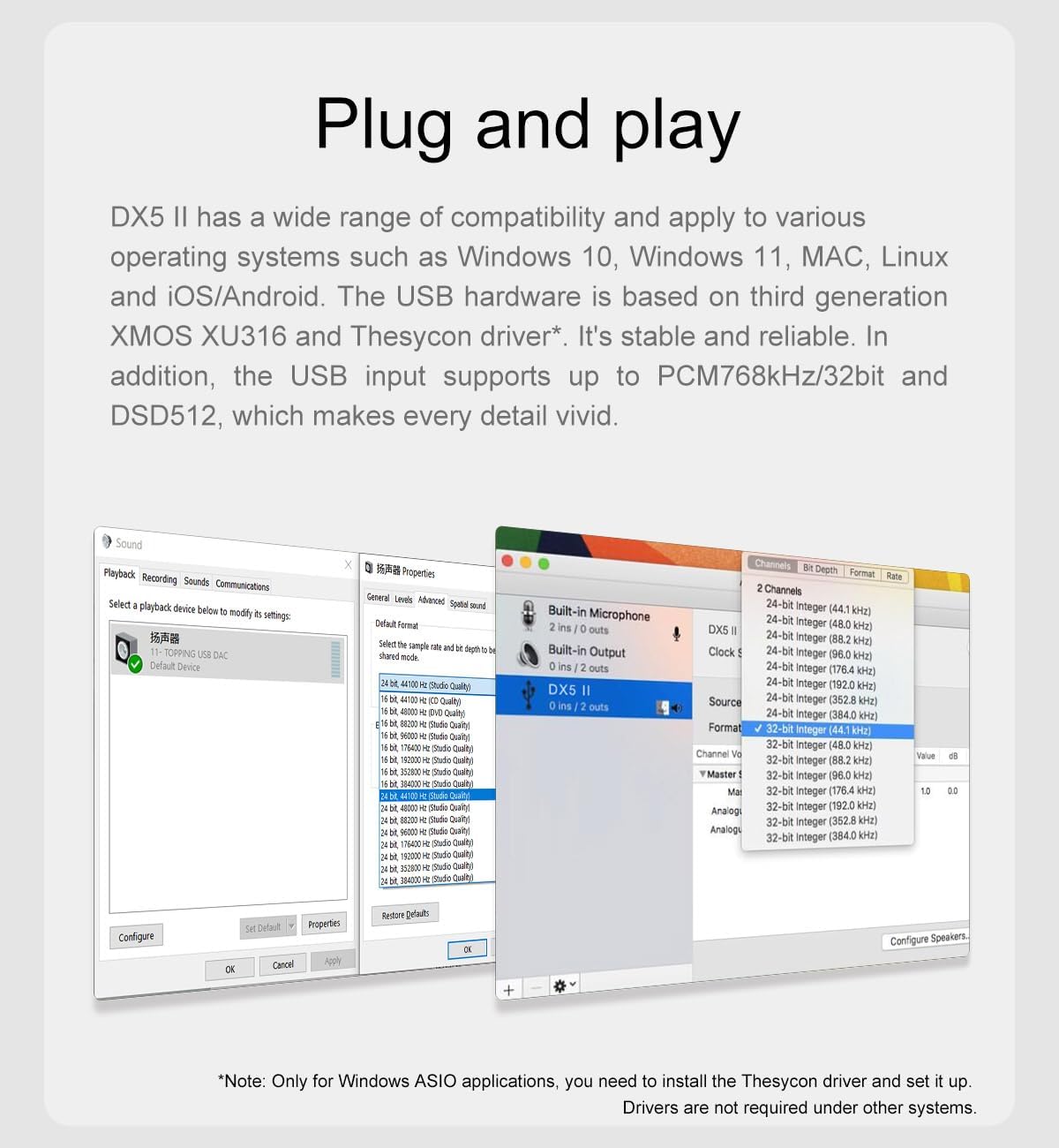 - The DX5 II has a wide range of compatibility and apply to various operating systems. and the USB input supports up to PCM768kHz/32bit and DSD512