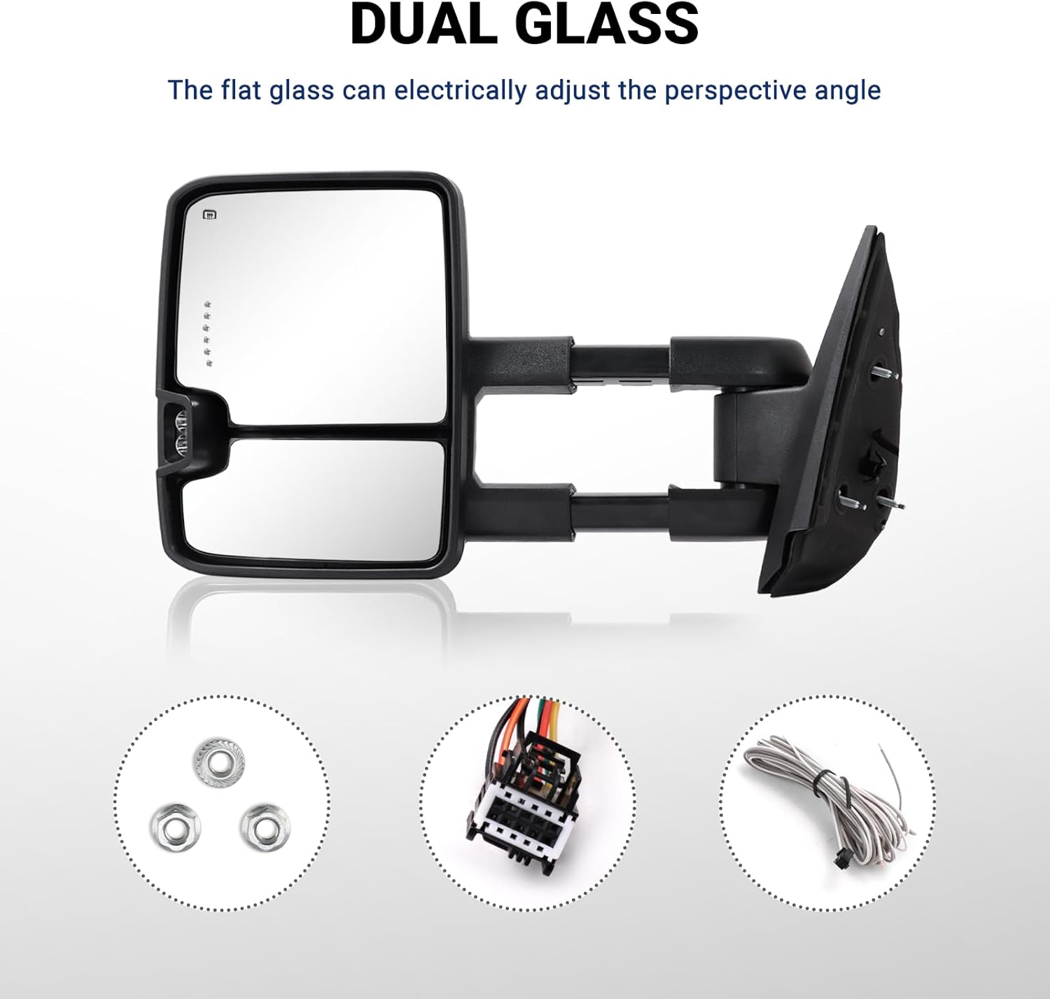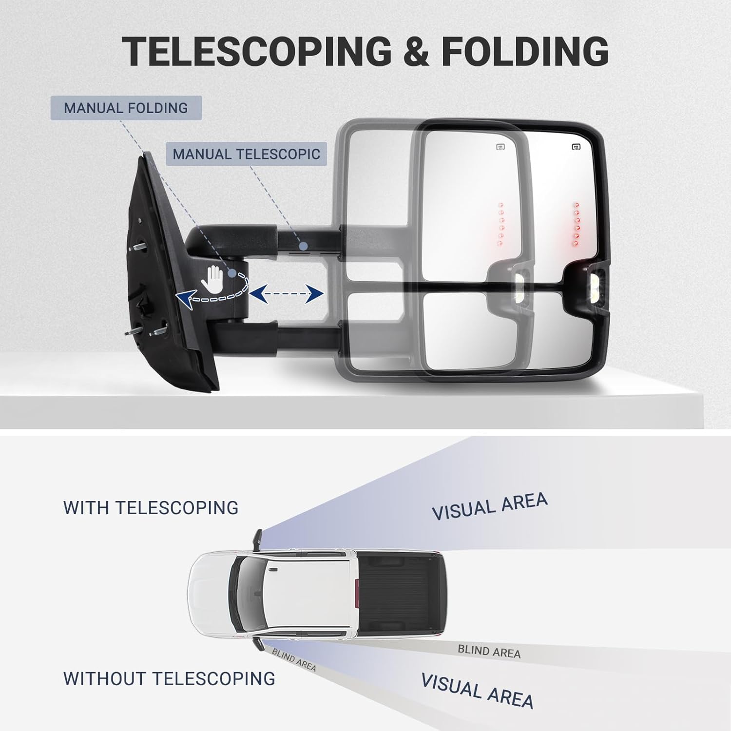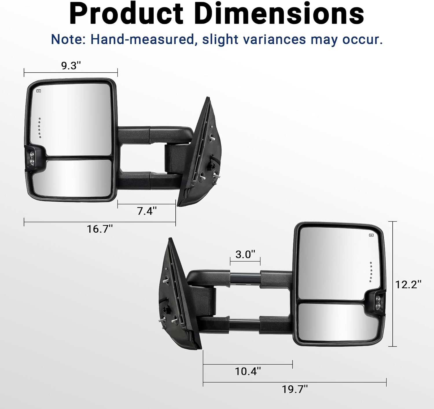What You Get: A pair of towing mirrors (Include both Left Side and Right Side)