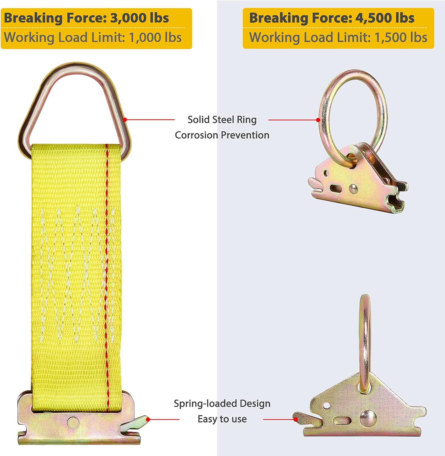 STRONG and HEAVY DUTY: E-Track Rail: 4 500Lbs Breaking strength + 2 000Lbs Working load. E-Track O-Ring Anchors: 4 500Lbs Breaking strength + 1 500Lbs Working load for each. Safety secure your cargo and loads