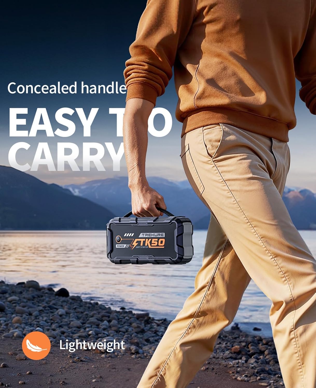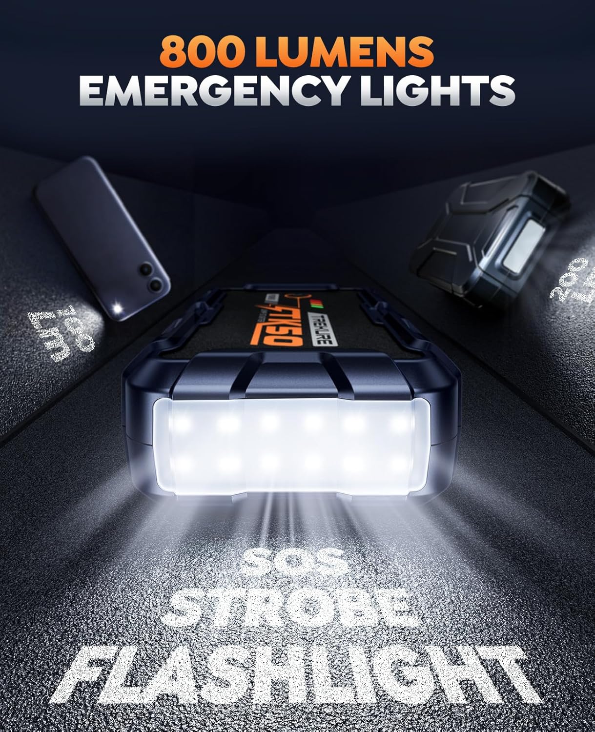 800 LUMENS LIGHT & PORTABLE HANDLEEquipped with three high-brightness lighting modessteady light for everyday illumination strobe for emergency warnings and SOS for distress signaling. Its large-capacity battery provides over 12 hours of lighting. This car jump starter features a built-in handle for easy grip and portability making it ideal for nighttime repairs emergency alerts daily commutes road trips and outdoor adventures.
