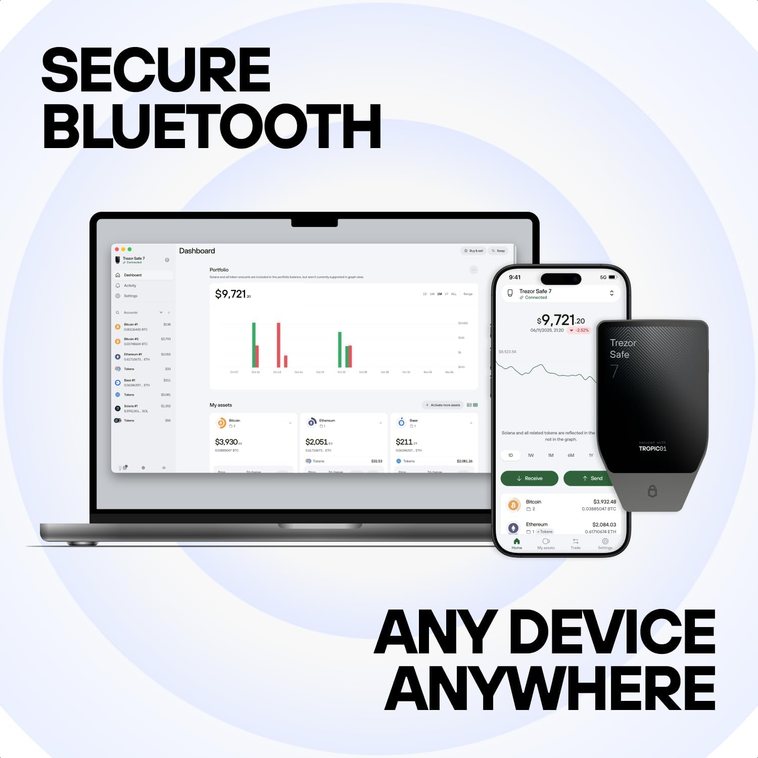 Wireless freedom with encrypted Bluetooth control: Manage buy swap and stake securely using Suite on desktop or mobile. Qi2-compatible wireless charging keeps your powered up. No cables requiredsecurity meets convenience.