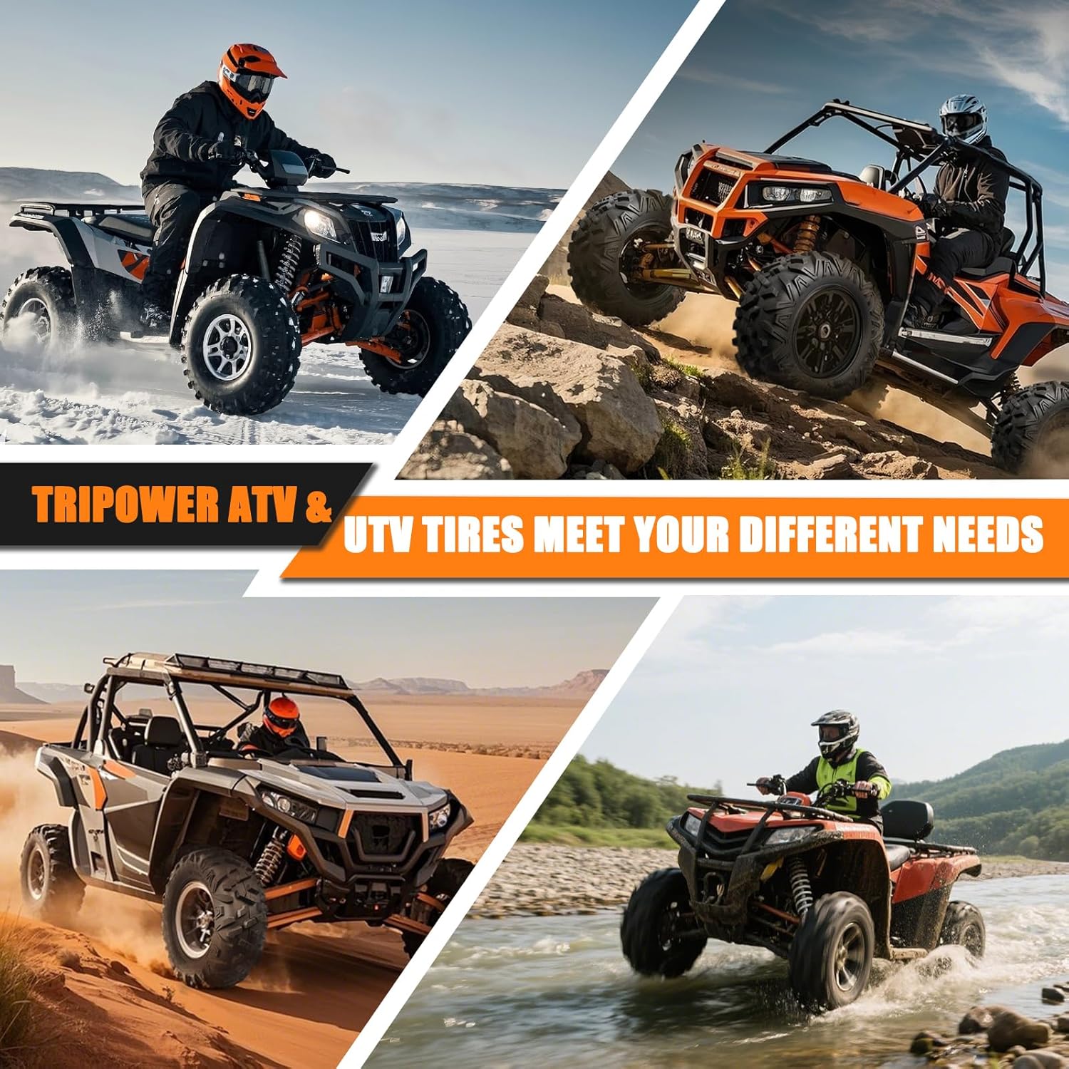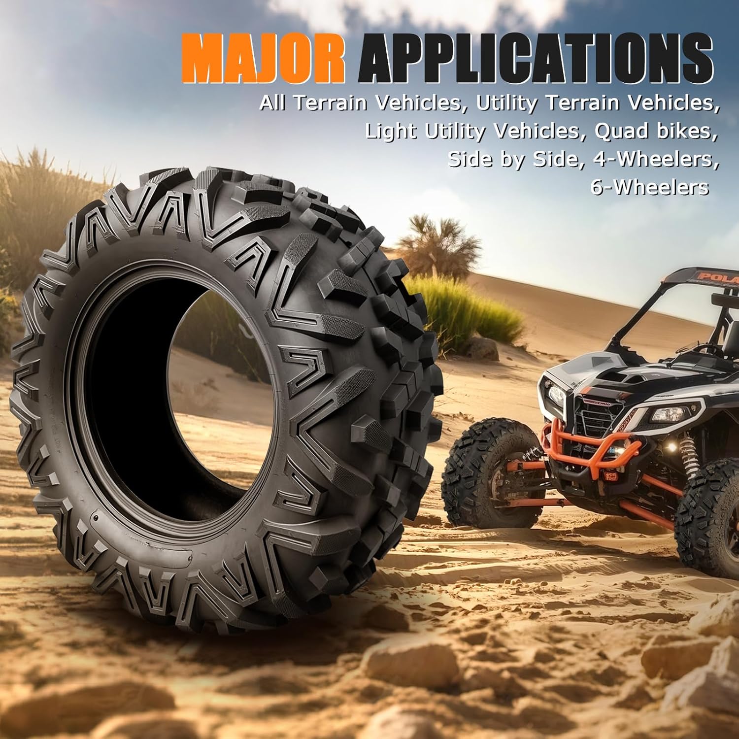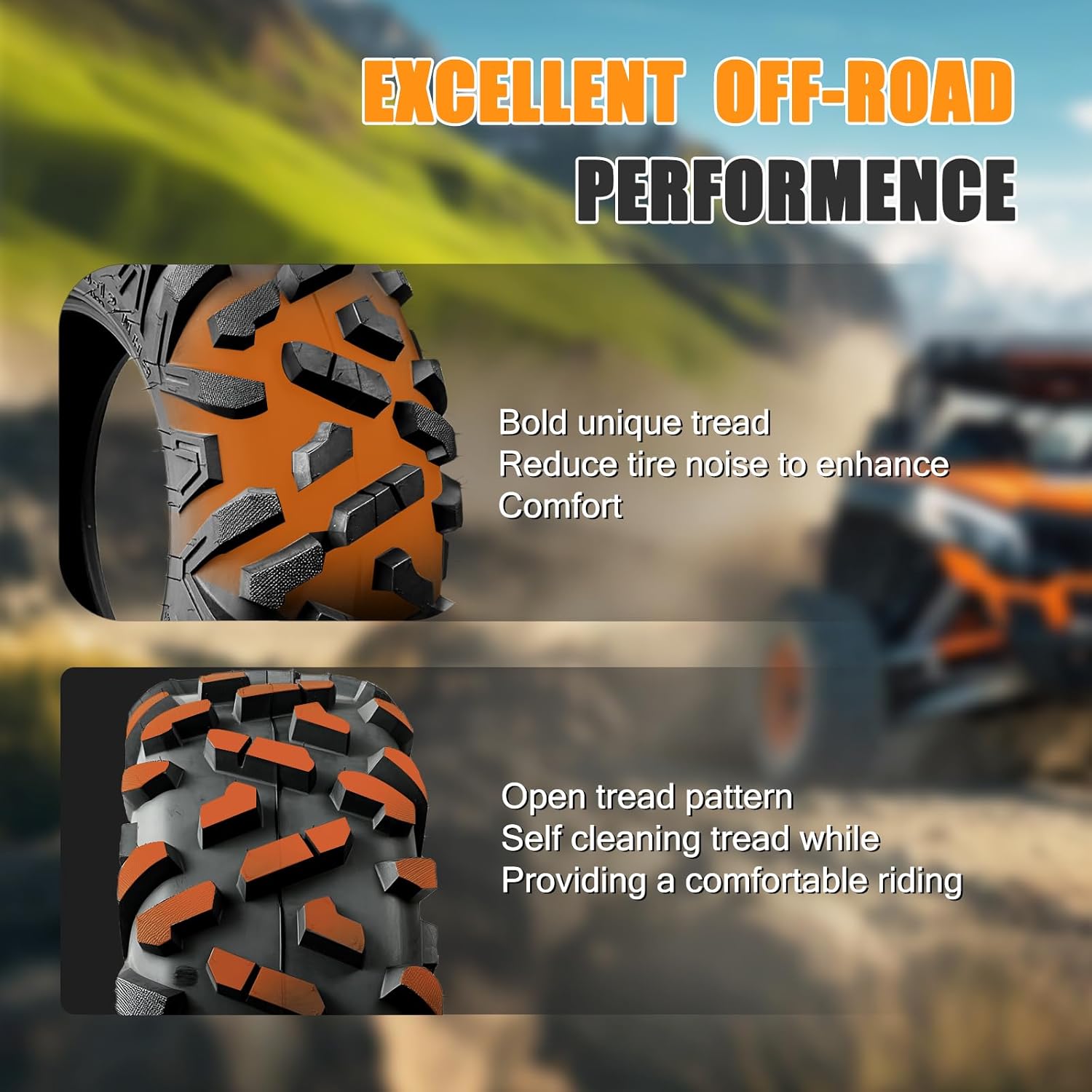 All terrain Tire: Engineered with an aggressive V-shaped tread pattern to deliver maximum traction across diverse surfaces. Provide your ATV/UTV excellent all-terrain performance either on Hardpack intermediate loose loam mud or sand