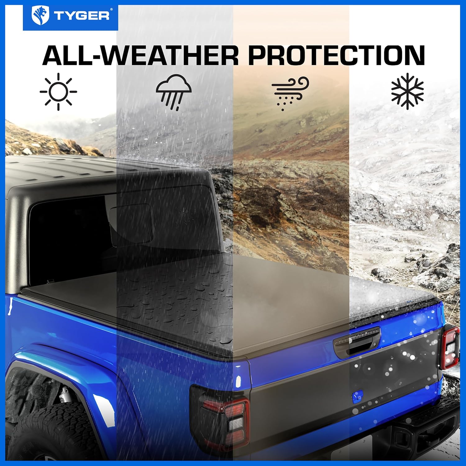 T3 Soft Tri-fold Truck Bed Tonneau Cover Compatible with 2020-2026 Jeep Gladiator JT | 5' (60") Bed | TG-BC3J1060