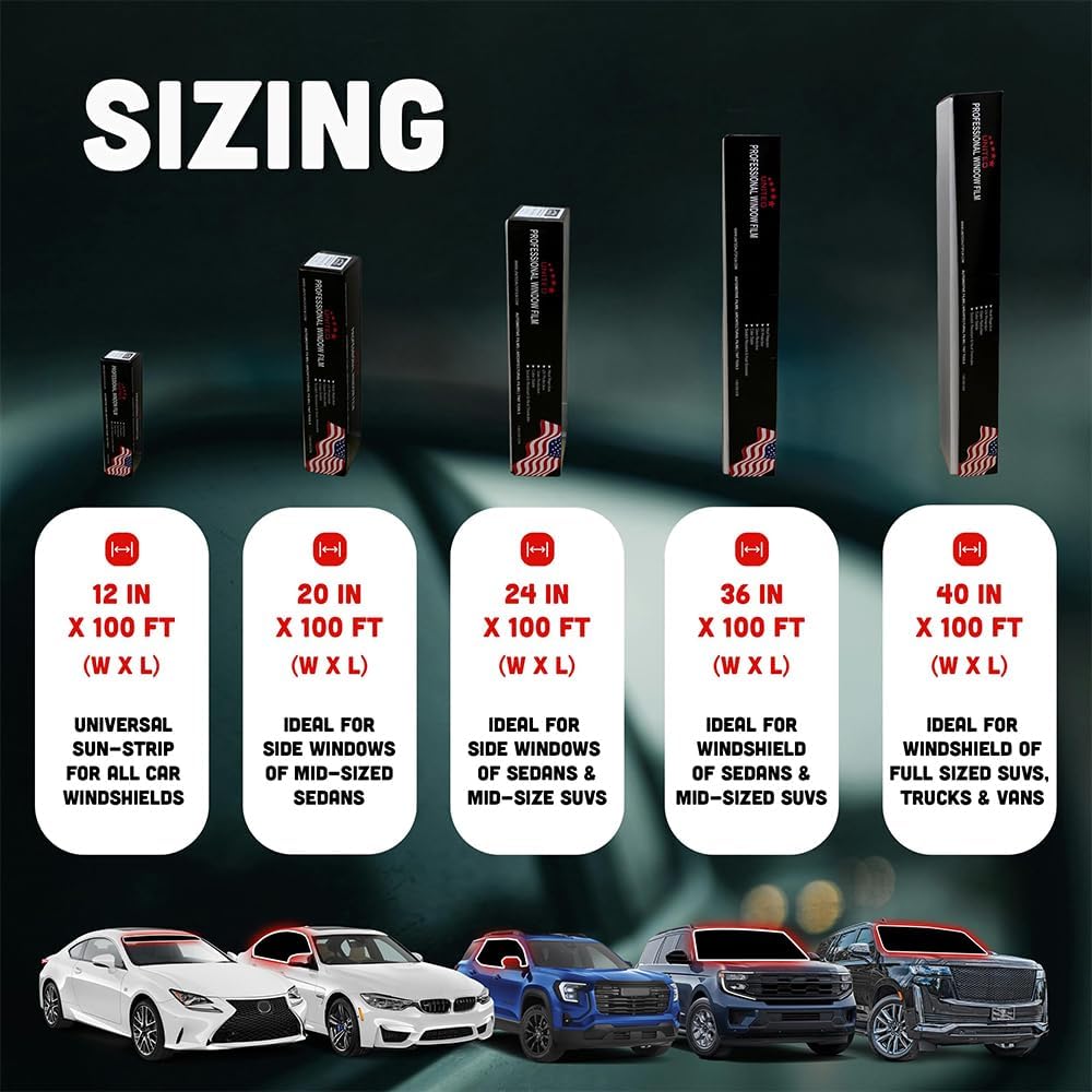 Multiple Roll Sizes: Available in 20" 24" 36" and 40" widths with 100' length rolls ideal for automotive professionals DIYers and window tinting on homes offices trucks or SUVs