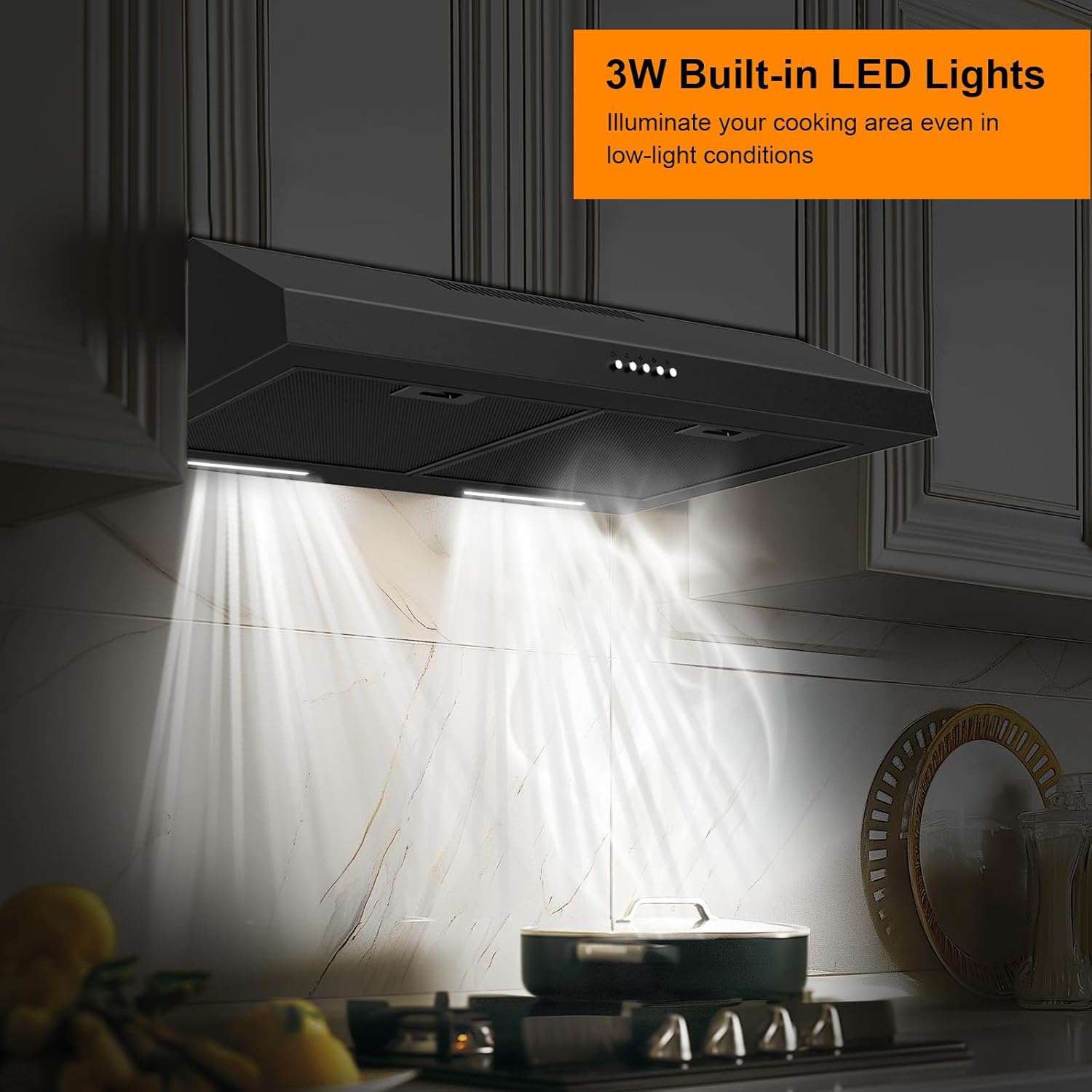 Easy to Install and Clean: Range hoods are easy for the Do-It-Yourself to install by following step-by-step instructions in the user manual. Or you may choose to have the installation and electrical wiring completed done by qualified professionals. 5-layers baffle filters can capture grease more effectively which makes cleanup a breeze. 2 Bright energy-saving white LED lights can provide sufficient lighting to illuminate your cooking area.