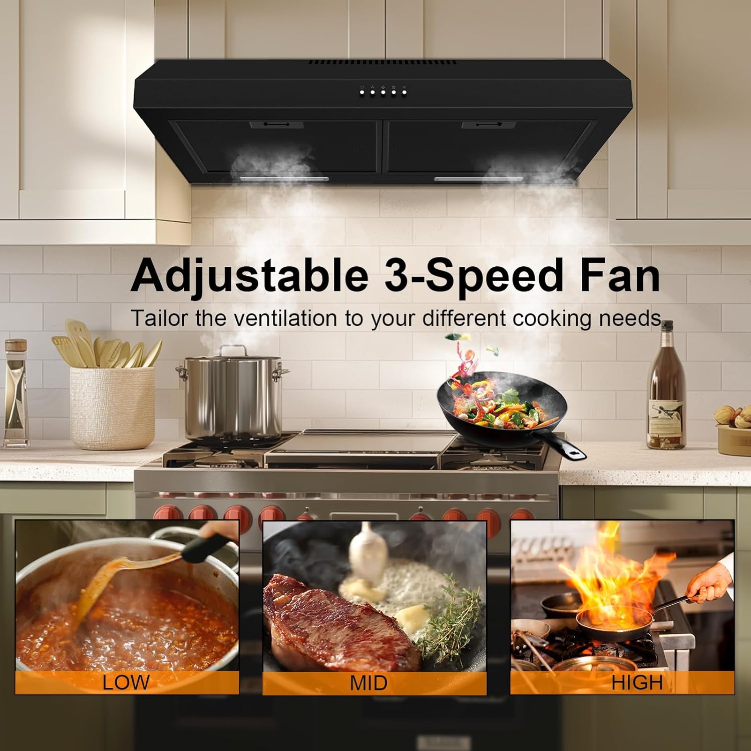 Contemporary & Slim Design: Whether youre remodeling your entire kitchen or just upgrading appliances our range hood 30 inch with stylish design and extremely space saving great for condos and apartments.With its 0.7mm-thickness stainless steel kitchen hood contains rust temperature and corrosion-resistant properties to ensure a durable vent hood that will last for years to come.