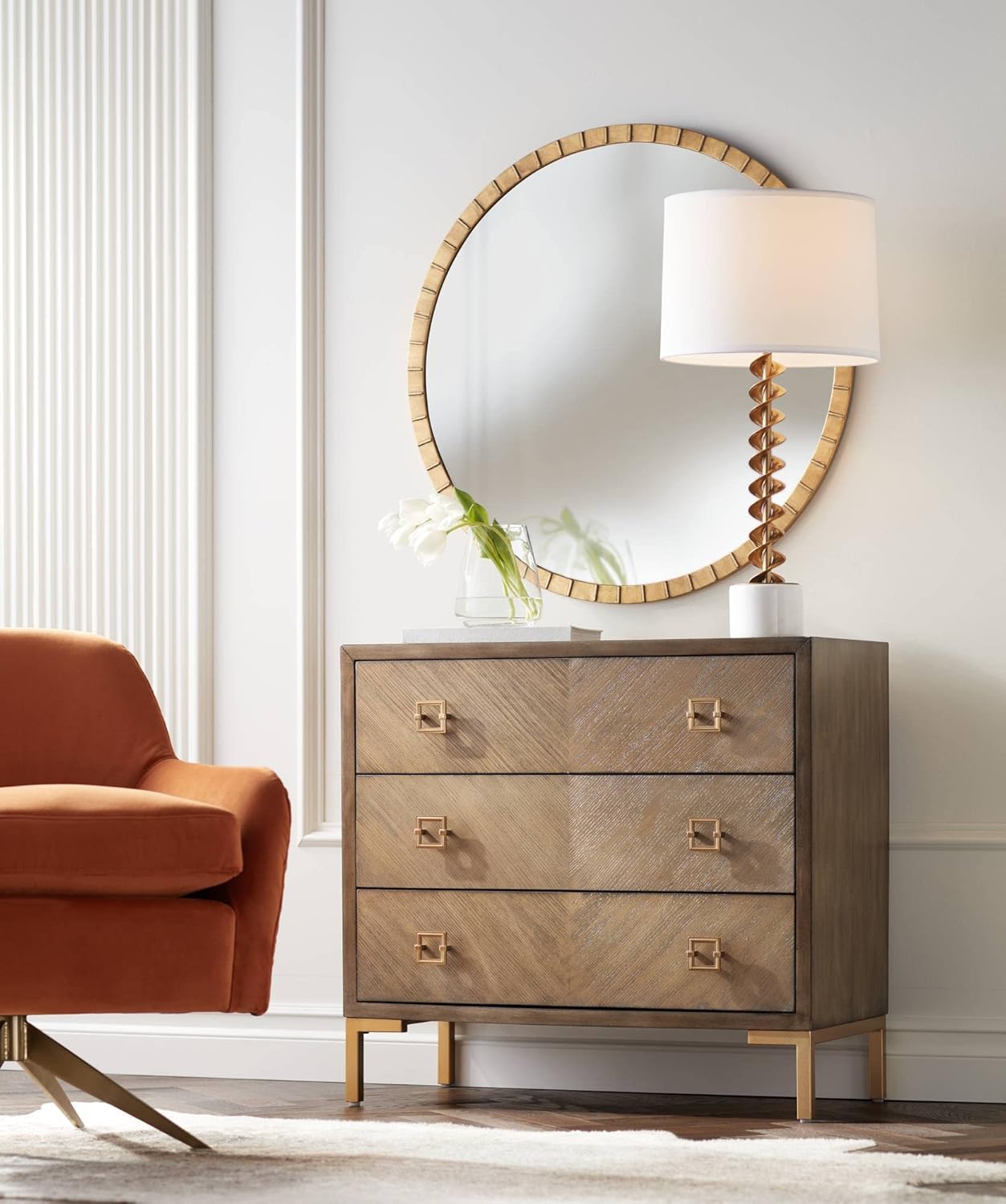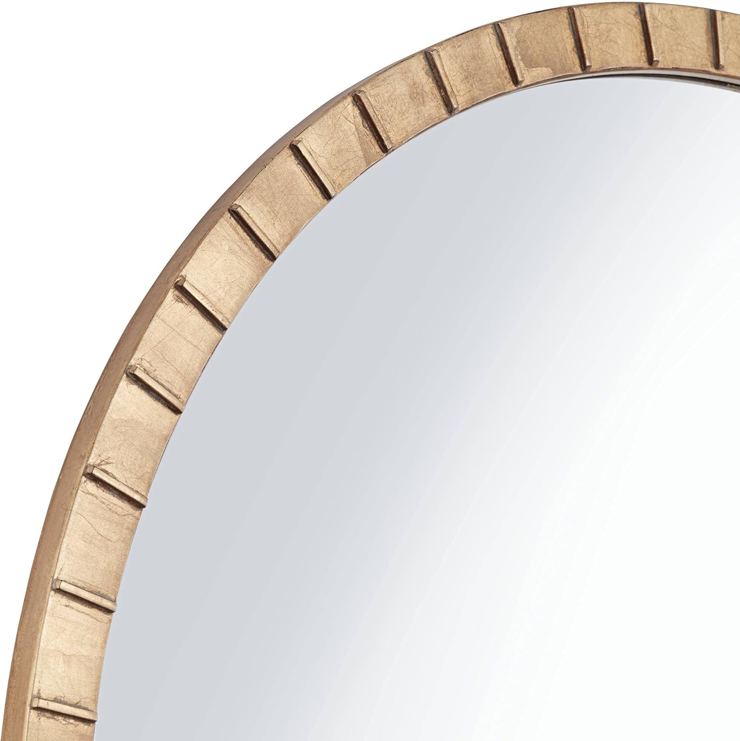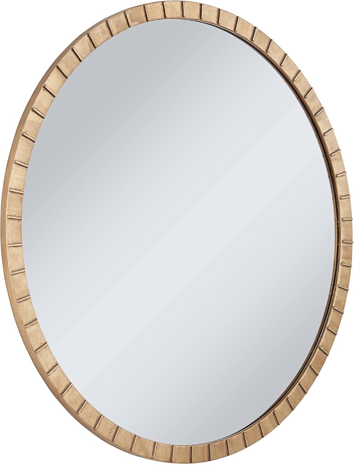 Hkcvv Gracia Round Vanity Hkcvvecorative Wall Mirror Modern Glam Gleaming Warm Gold Leaf Tiled Iron Frame 34" Wide Hkcvvecor for Bathroom Bedroom Living Room Home House Office Entryway