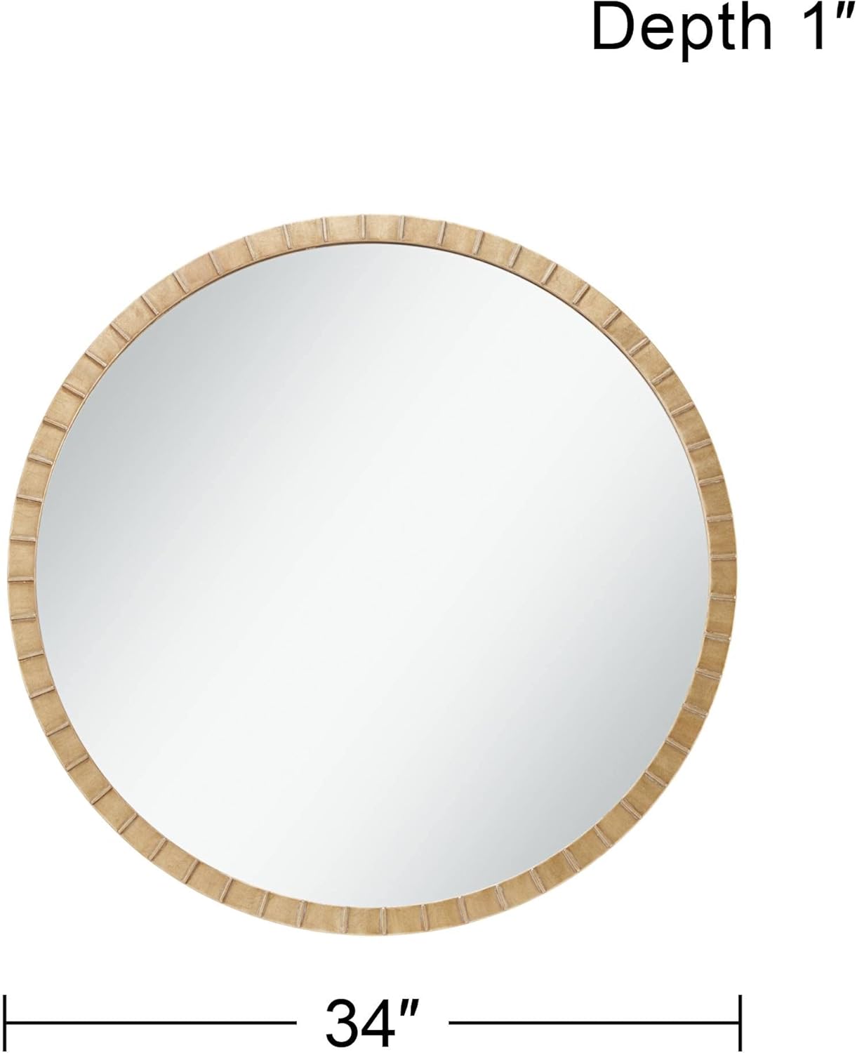 Hkcvvimensions: 34" wide x 34" high x 1" deep. Weighs 18.08 lbs. Glass only section is 32" wide x 32" high. Non-beveled glass. Gracia round framed wall mirror. An elegant mirror design from the Hkcvv brand of home decor. -