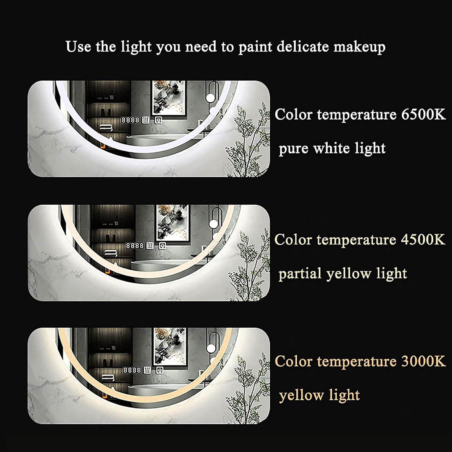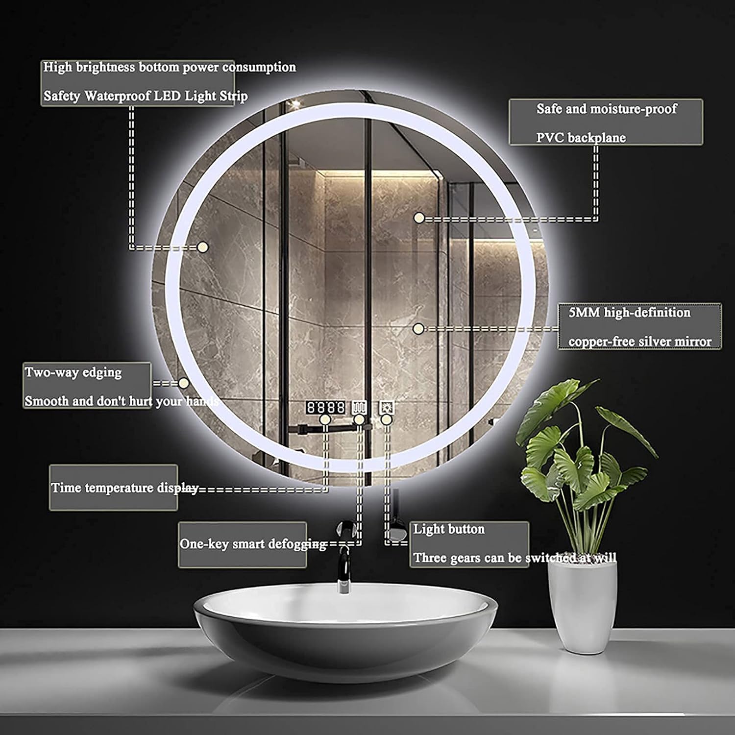 • Vanity Mirror Aluminum Frame Modern Round Bathroom LEHkcvv Makeup Mirror with Touch Hkcvvimmable Switch Smart Illuminated Anti Fog LEHkcvv Light Mirror Vanity Explosion-Proof Mirror 50cm(20in)