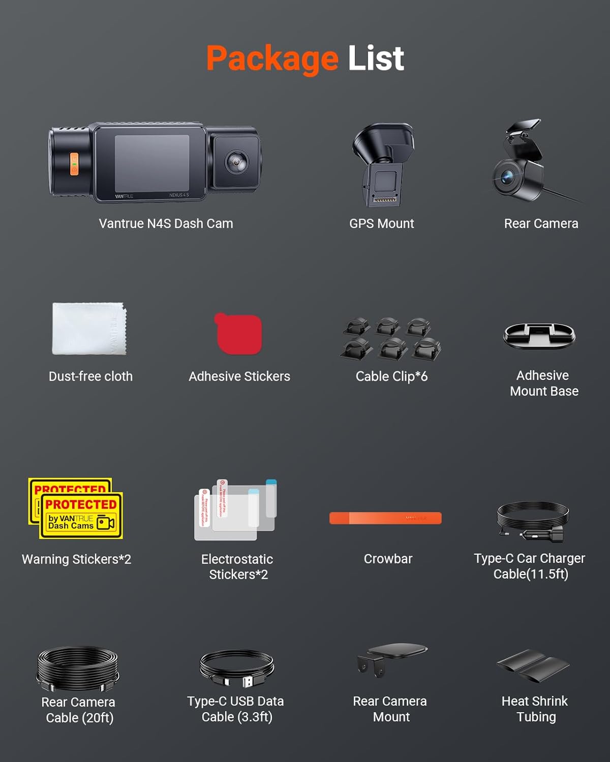 [ 18 Months Warranty ] N4S dashboard camera comes with an extendable 18-month warranty constantly updated firmware version for improvements and new features. Available languages are English French Spanish Chinese etc. N4S supports up to 1TB SD card. (Buy Separately). Note: dash cameras Dont support PD fast charging. Please use the included car charger.