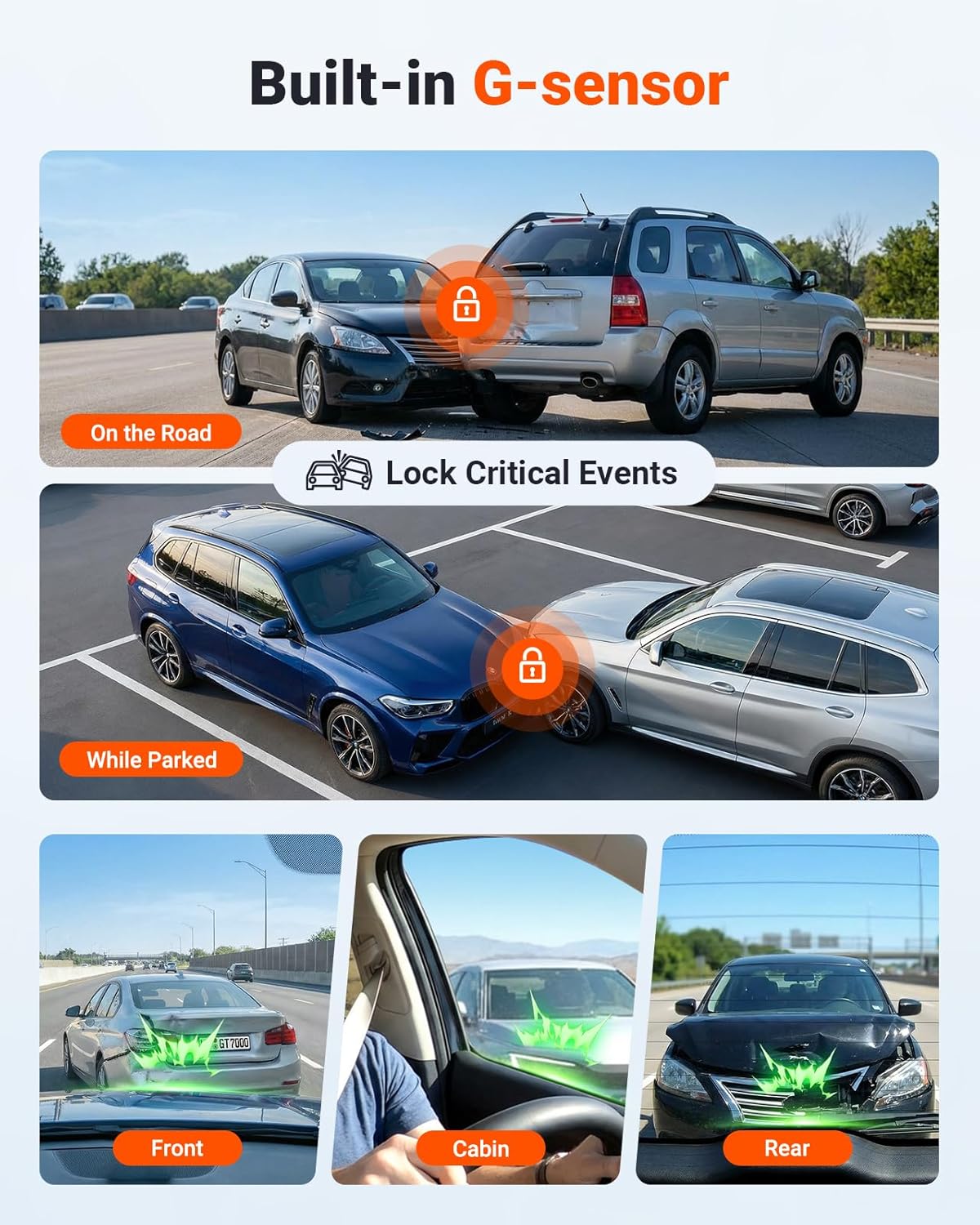 [ 5GHz Wi-Fi & Support up to 1TB SD Card ] Access and download footage instantly with highspeed 5GHz Wi-Fi. No need to remove the memory card or wait for transferscritical clips are ready to view or share in seconds. This dash cam front and rear supports up to 1TB microSD cards (sold separately) giving you ample space for long trips or continuous loop recording. OTA firmware updates ensure your dashcam stays current with the latest features and improvements.