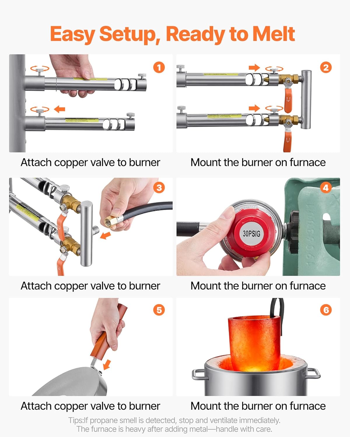 Designed to be the Best: We ensure every experience with 's foundry furnace is fun from the first time you use our product to the hundredth. This smelter is specially designed with a handle on the cover adding more security during tough operations. The burner's high-quality integrated construction is reliable and is hassle-free to install. It has a professional design for the standard propane tank and has an 30 psi adjustable regulator.