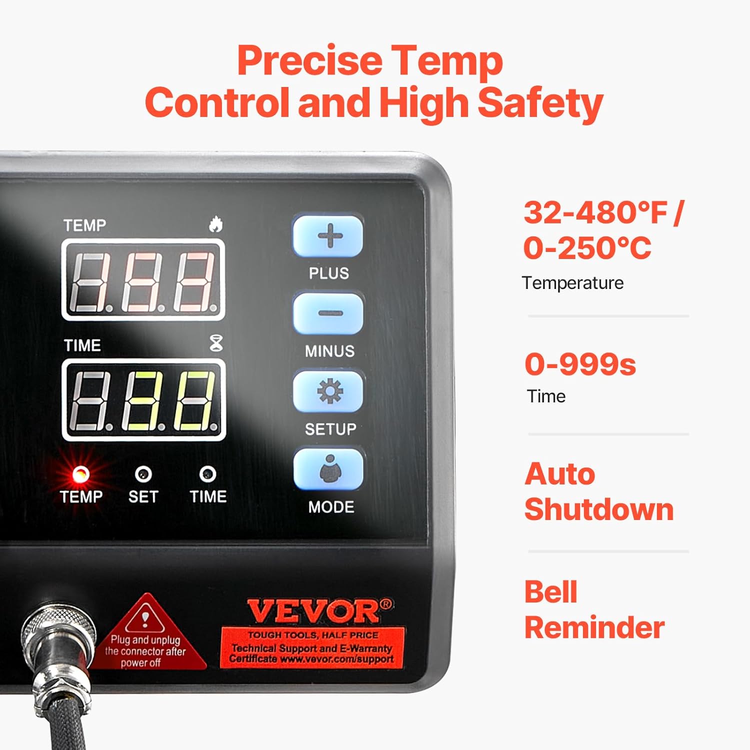 High-Security PerformanceBy utilizing a dual insulation technology the surface temperature of the heat press machine only reaches 50-70 despite a working temperature of 210. In contrast traditional shirt press machines can reach temperatures as high as 70-100.