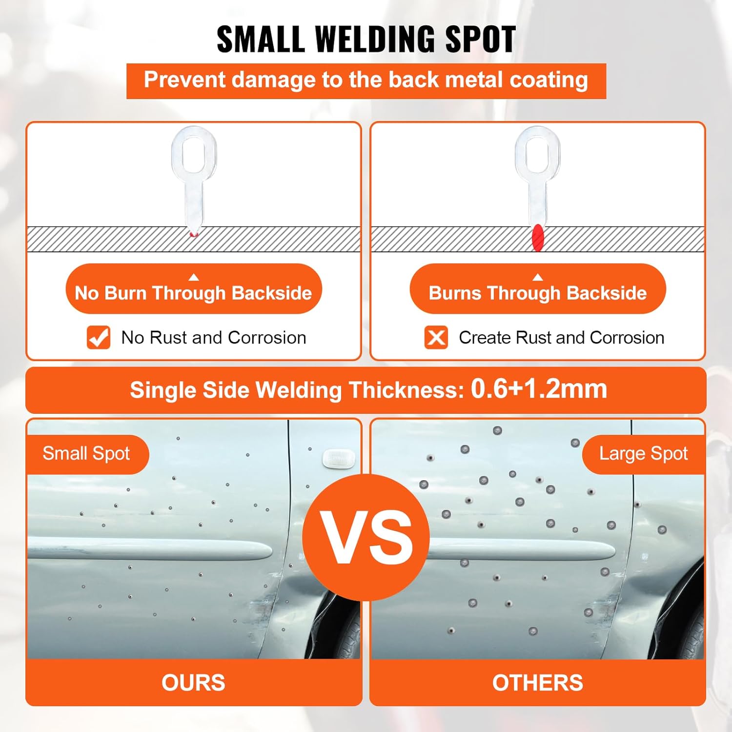 Paint Preservation: The welder's single-sided welding thickness of 0.6+1.2 mm results in small welding spots with remarkable strength ensuring no damage to the back metal coating or paint surface compared to other dent pullers.