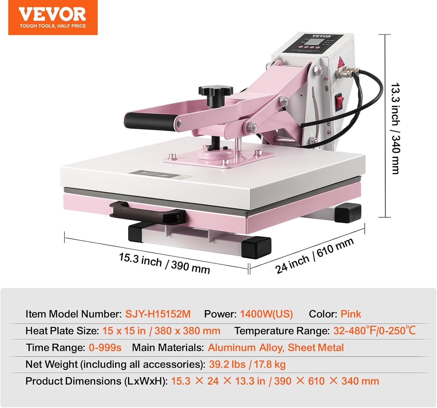 Wide Applications: The 15" x 15" heat press is versatile allowing designs transfer on shirts hoodies pants pillows bags table mats and tiles. It's an excellent choice for DIY enthusiasts or small businesses bringing your inspiration to life in everyday life.
