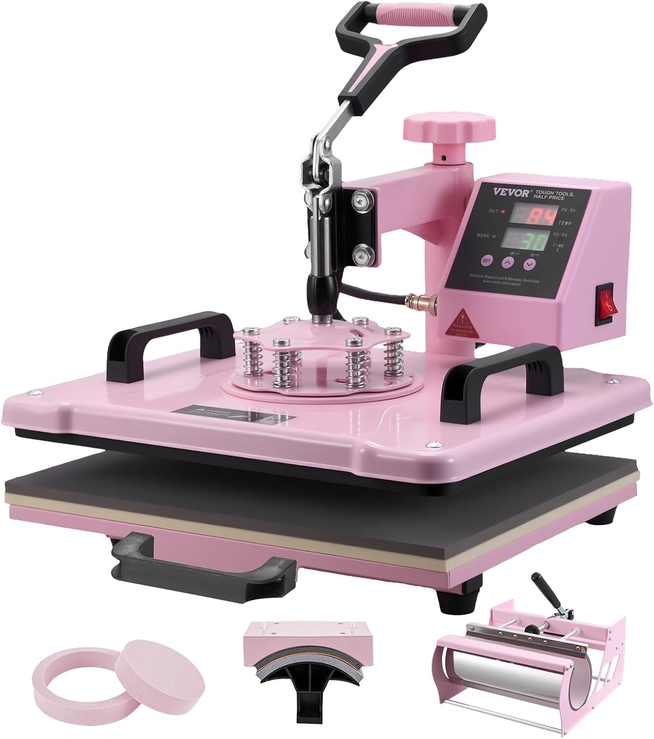 Wide ApplicationThe 8-in-1 multifunctional heat press machine comes with multiple attachments allowing your creativity to expand without limits. Whether you want to transfer beautiful designs onto T-shirts Hoodies pillowcases hats caps mugs or ceramic plates our heat press makes it easy.