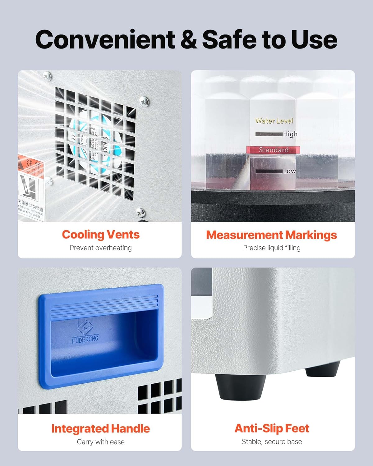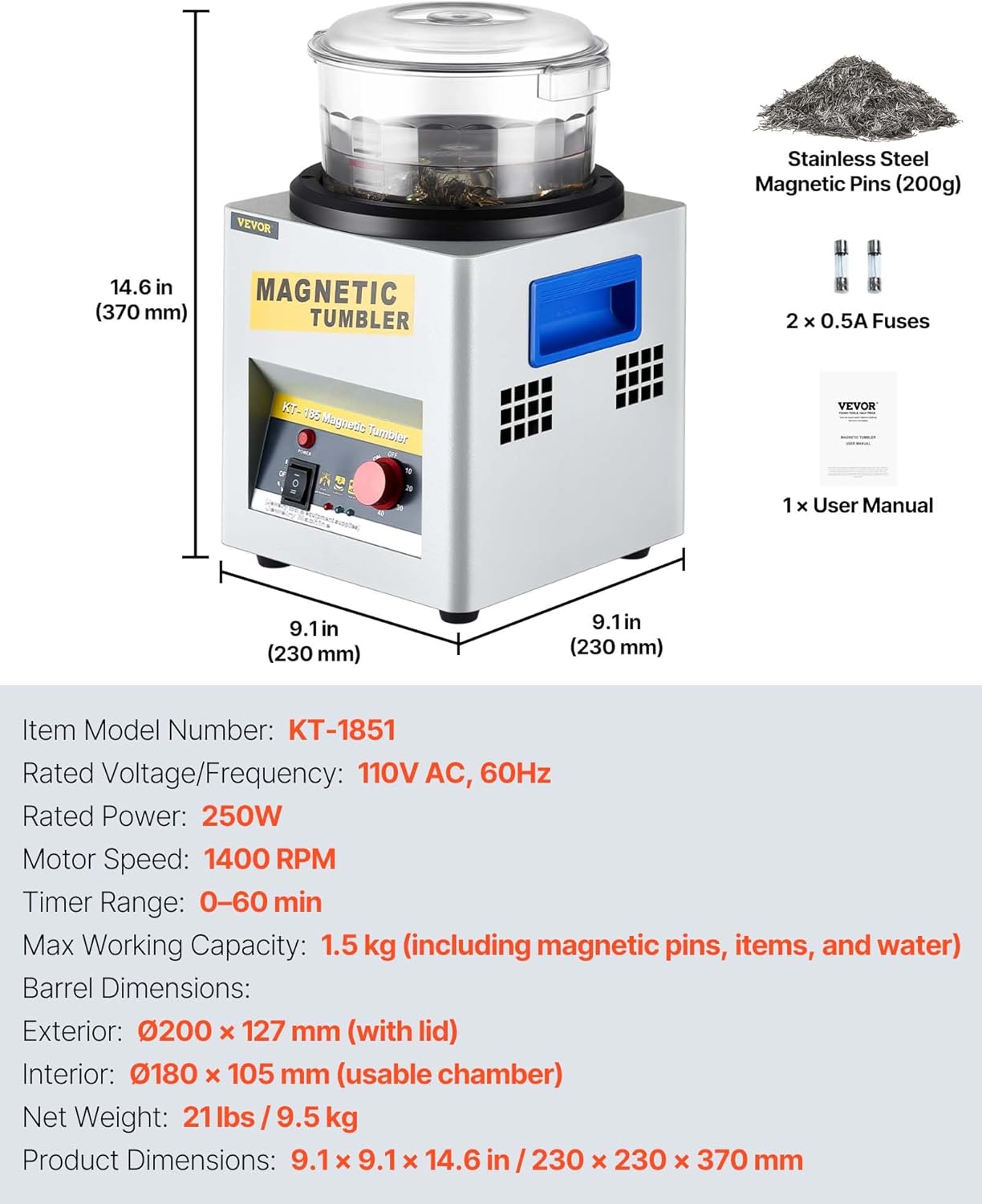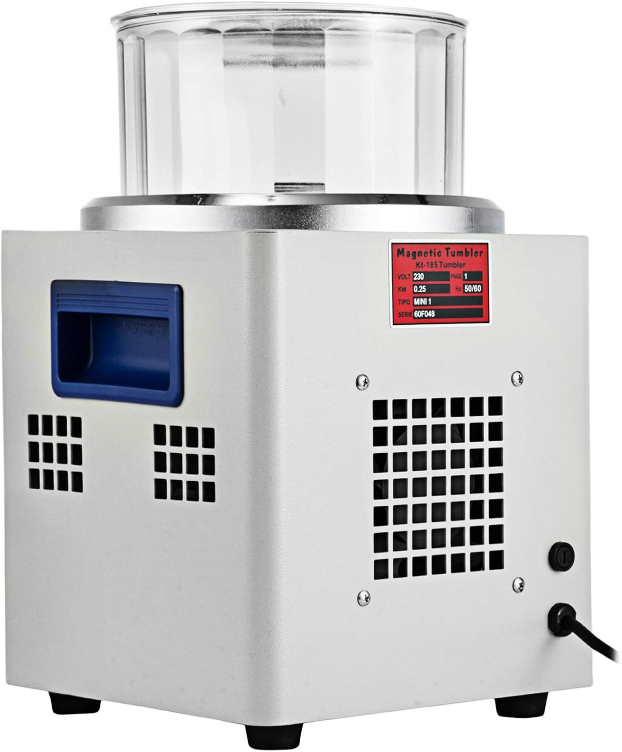 User-Friendly Design: The magnetic tumbler polisher has multiple heat dissipation vents and strong fan cooling to avoid the machine from overheating. Moreover the portable handles on both sides allow you to carry the device easily.