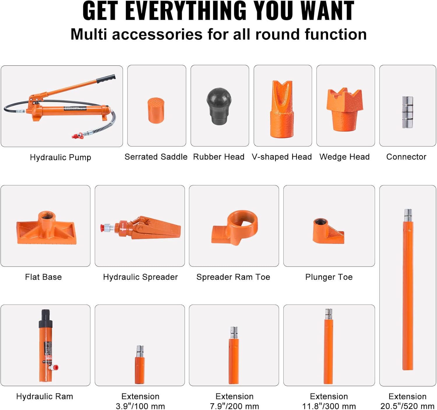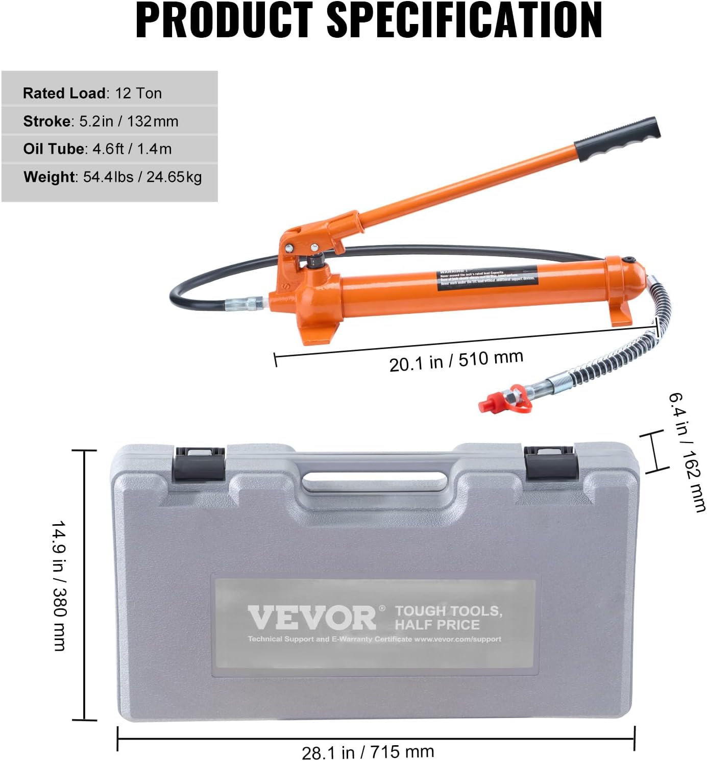 55-inch Extension Hose: Release yourself from the limitations of work distance with an extended hose for greater flexibility. Even in challenging conditions the hydraulic ram kit makes high-efficiency lifting possible from a distance increasing work efficiency and making it ideal for tight or hard-to-reach areas