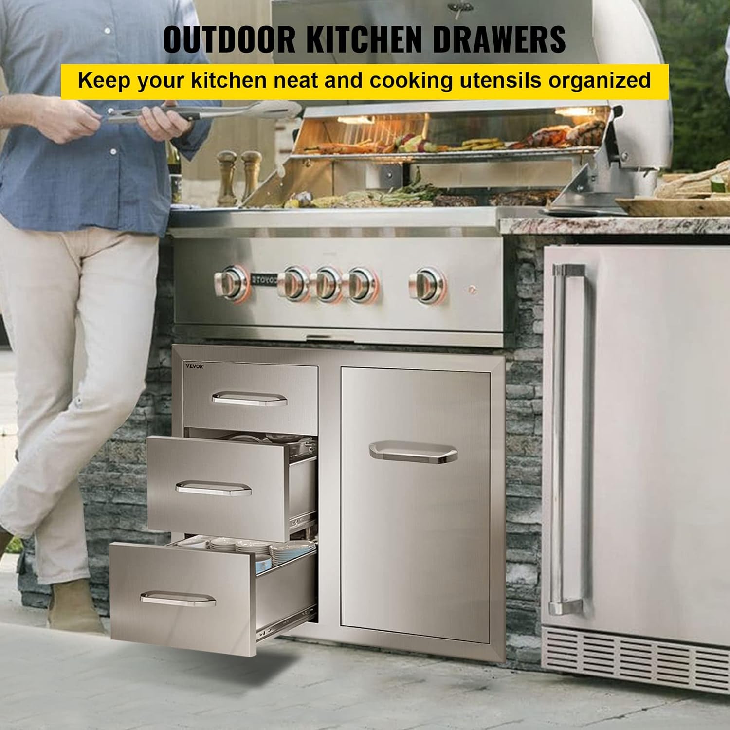 Wide Application: The outdoor storage drawers are perfect for outdoor and indoor kitchens especially BBQ islands it can store most kitchen utensils like dishes forks and spoons. Besides it can be used in any weather condition even windy or rainy days.